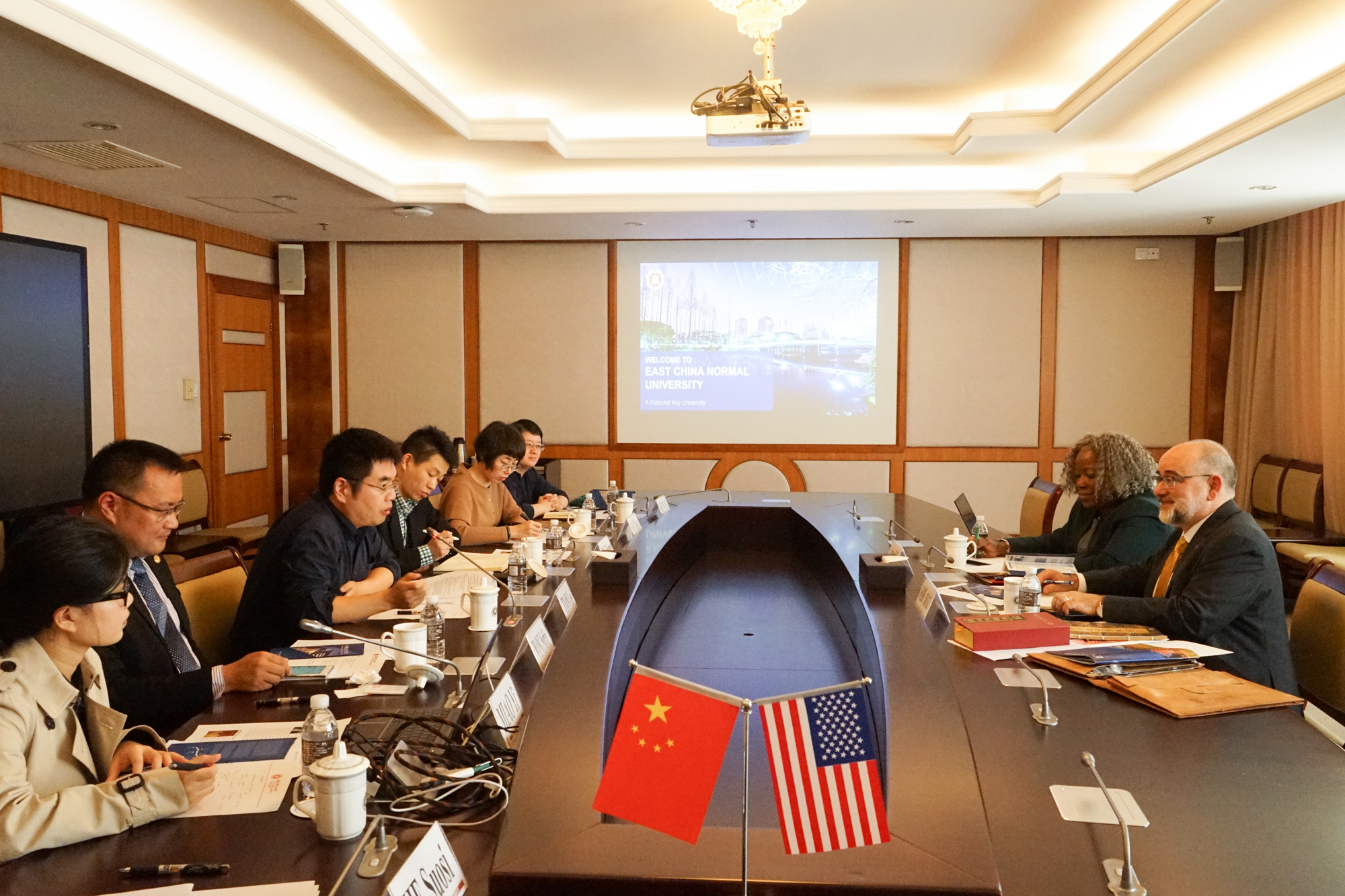 杨昌利首先对该校代表团的到访表示欢迎,随后介绍了华东师大近期的校情及未来发展方向,肯定了两校多年来在校际交流及孔院建设中所取得的成果,并表示将进一步支持两校的教学科研合作。随后,双方就续签校际框架协议、拟签署学生交换协议以及拓展两校教师科研合作事宜展开讨论并达成一致。双方均表示,两校将继续维持人文社会学科上的既有合作,并尝试开拓其他优势学科领域新的交流。