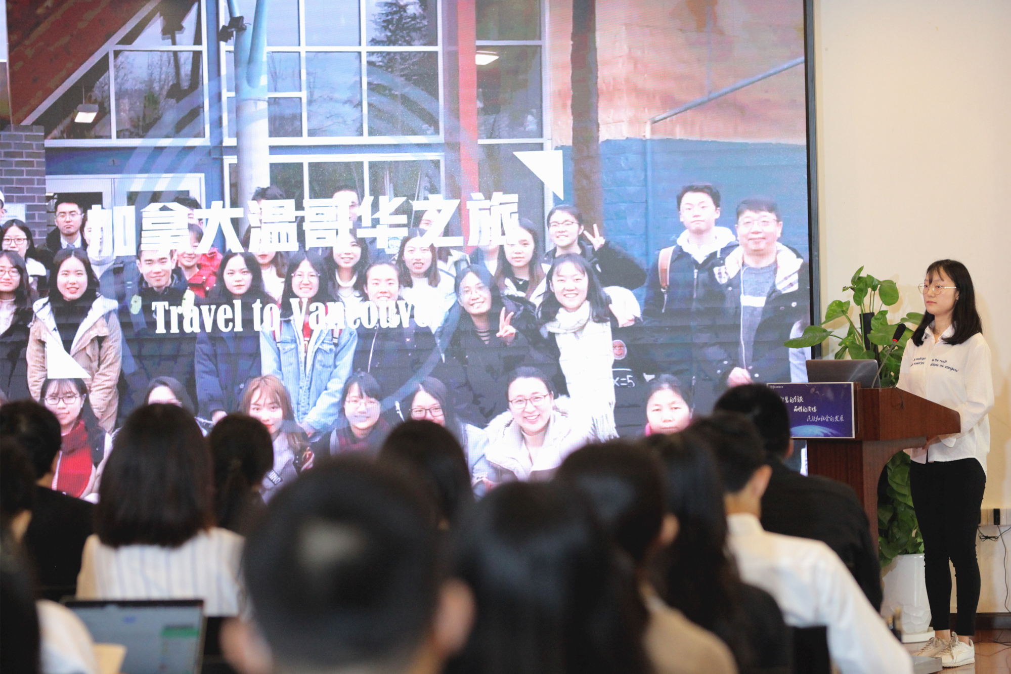 接下来,外语学院梁超群教授、英语专业郁馨洁同学分别从项目运行、学习感受角度出发对于此次项目作了介绍。作为赴加拿大之行的带队老师,梁超群从项目背景、项目设计、选派工作、课程设置、学习成效等方面对今年UBC项目的运行情况作了介绍,对项目精心的设计以及学生的高度投入给予了高度评价,对教务处和学生所在院系的高效管理与服务致以衷心感谢。郁馨洁以流利的全英文演讲,讲述了对于加拿大包容文化与社会、人与自然和谐相处的深刻印象;通过研修,了解了当地的新课程体系以及提升教学核心素养的理论知识与教学方式,更加明晰了未来教师职业的定位规划,明确了成为卓越教师的理想信念。