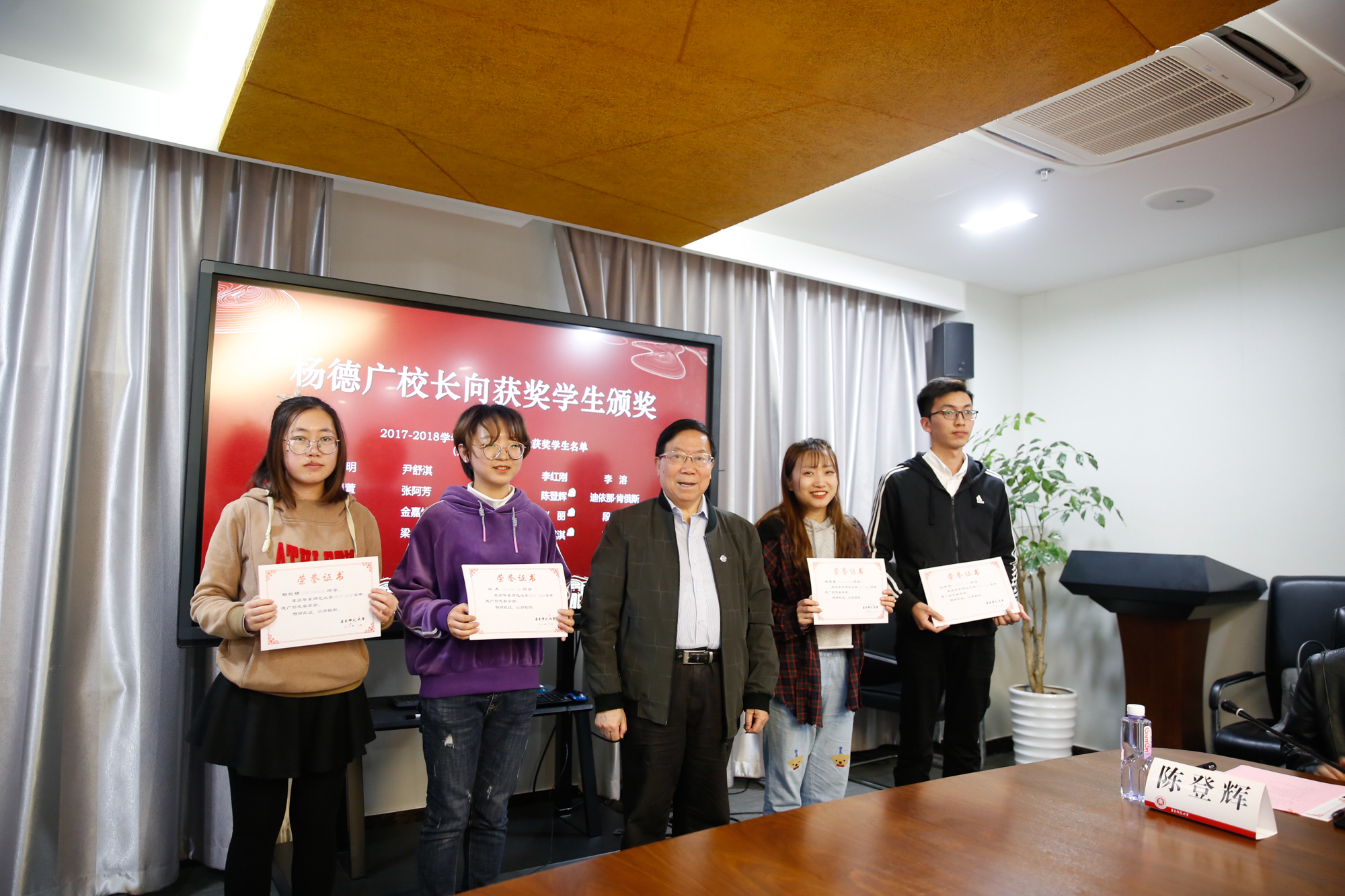 “德广励志奖学金”捐赠人杨德广为获奖学生颁奖