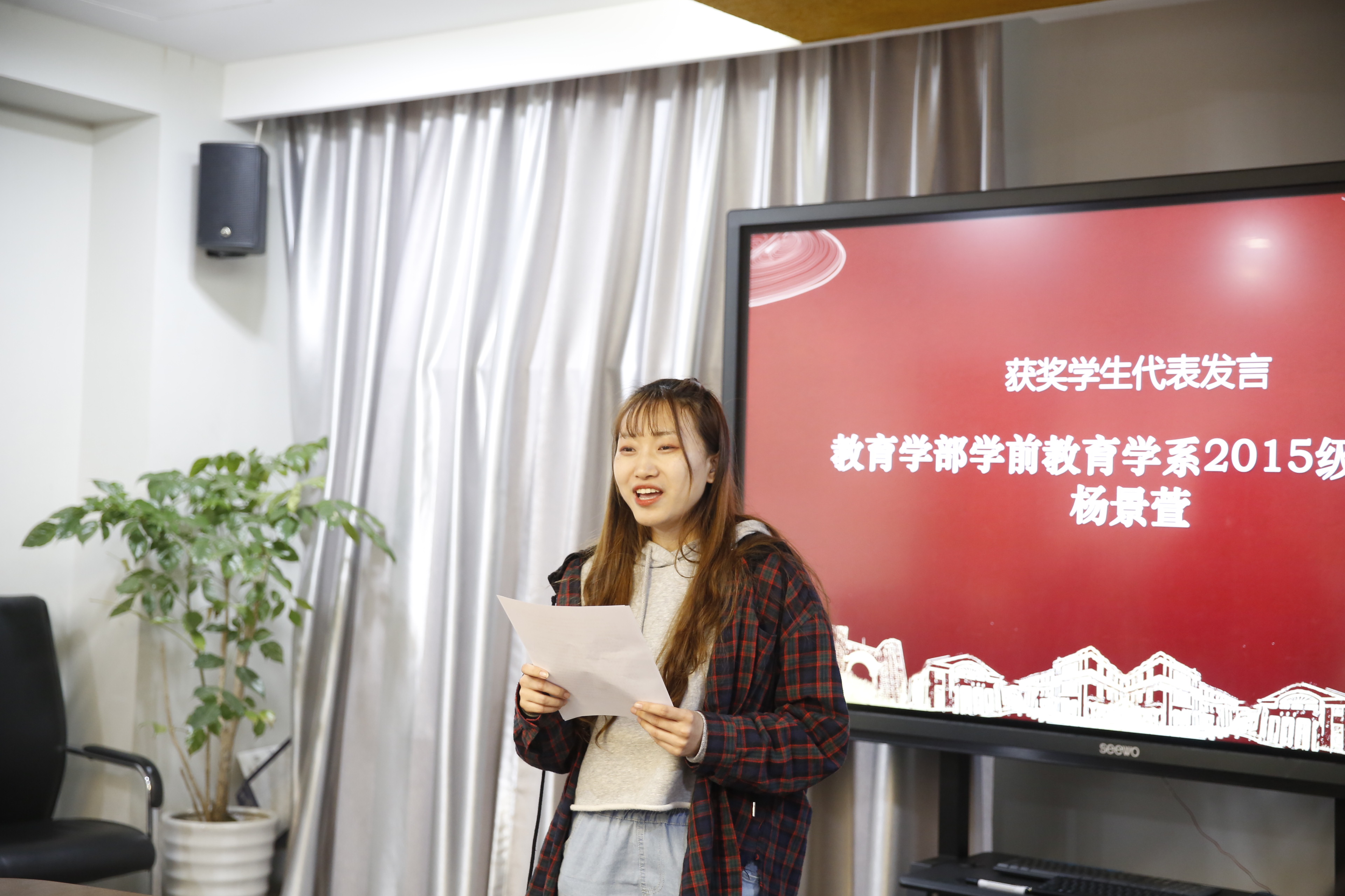 获奖学生代表2015级学前教育专业杨景萱发言