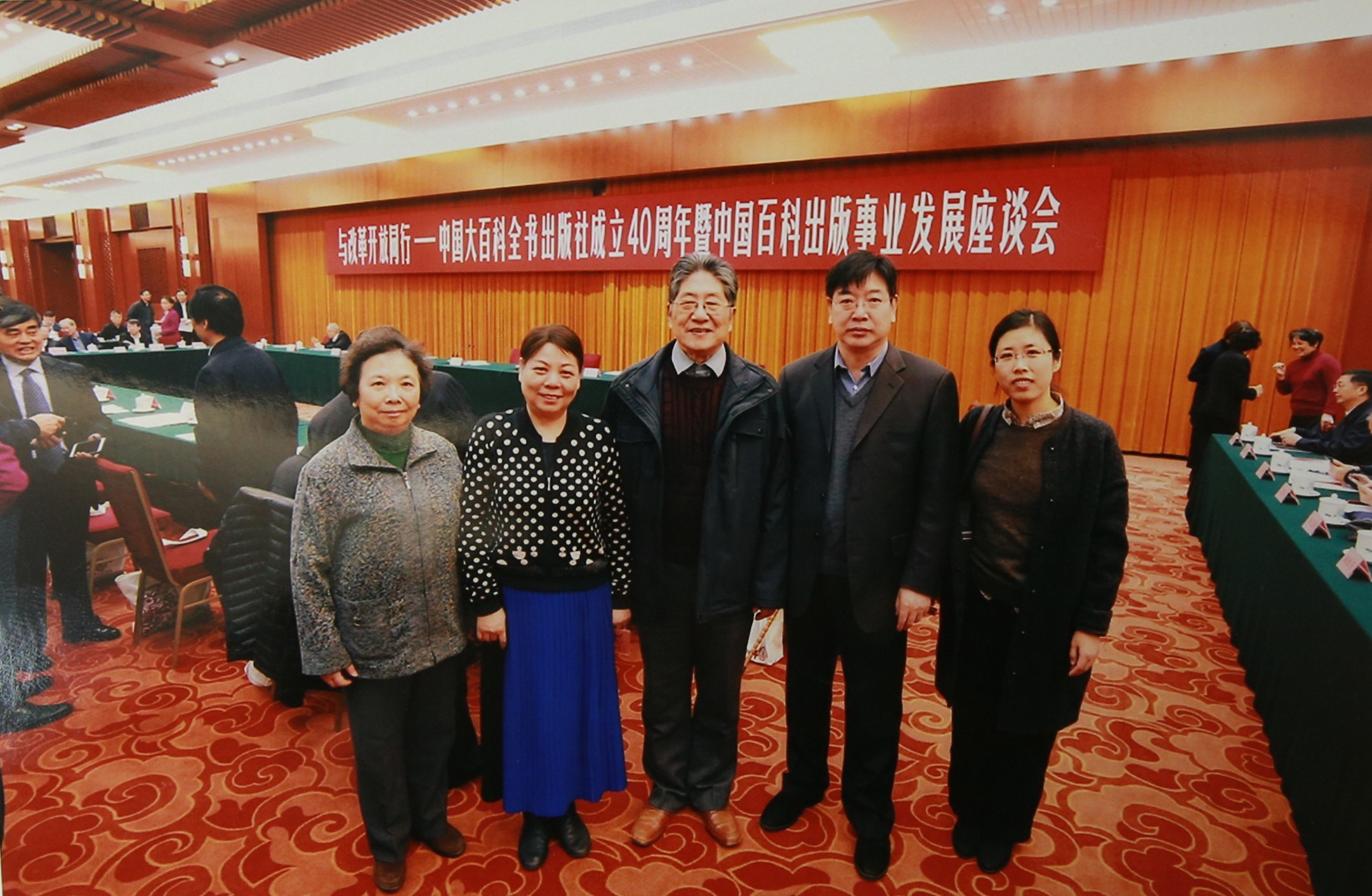 蒋长瑜(中)、杜德斌(右二)参加大百科全书出版社成立40周年座谈会