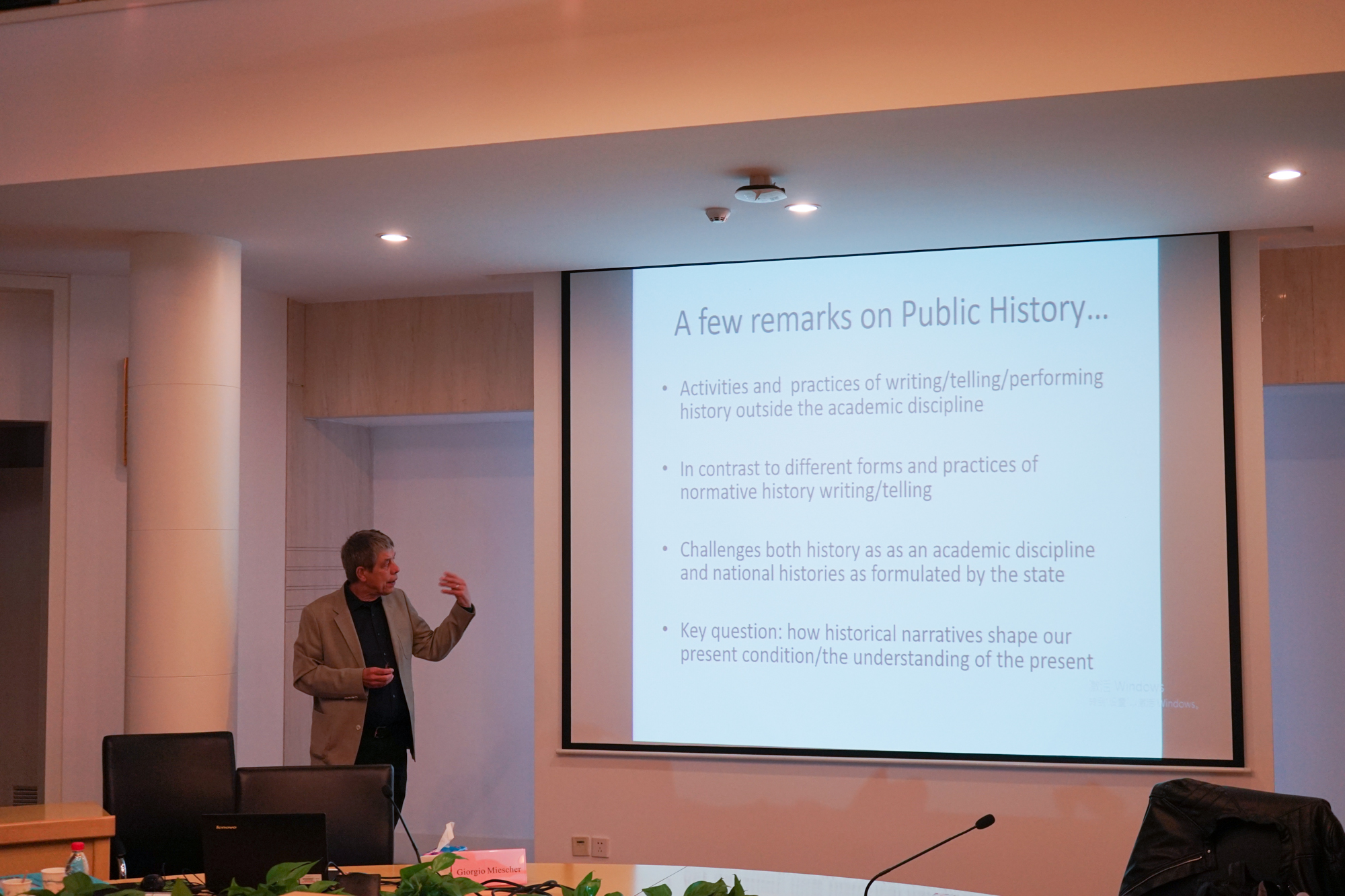最后,瑞士巴塞尔大学的Giorgio Miescher教授进行了题为“家庭档案与公众史学:探讨家庭档案的历史研究潜力——以老照片上的乌萨克斯为例”的讲座,围绕家庭档案和官方档案资料的区别和运用,及其历史记忆的价值、历史书写对现实的塑造和对下一代人的影响,照片图像对于历史文献记载空白的补充等多个问题进行了剖析。会后听众对于中国家庭档案利用方面的问题与教授进行了交流。
