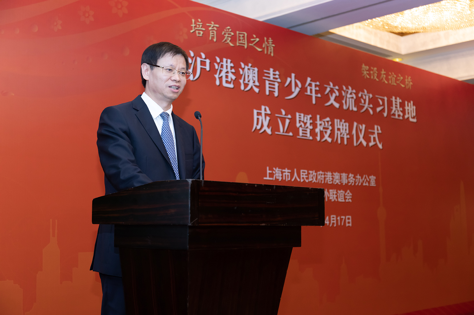 4月17日下午,我校副校长李志斌出席了由上海市人民政府港澳事务办公室与上海海外联谊会共同牵头的“沪港澳青少年交流实习基地”成立暨授牌仪式。