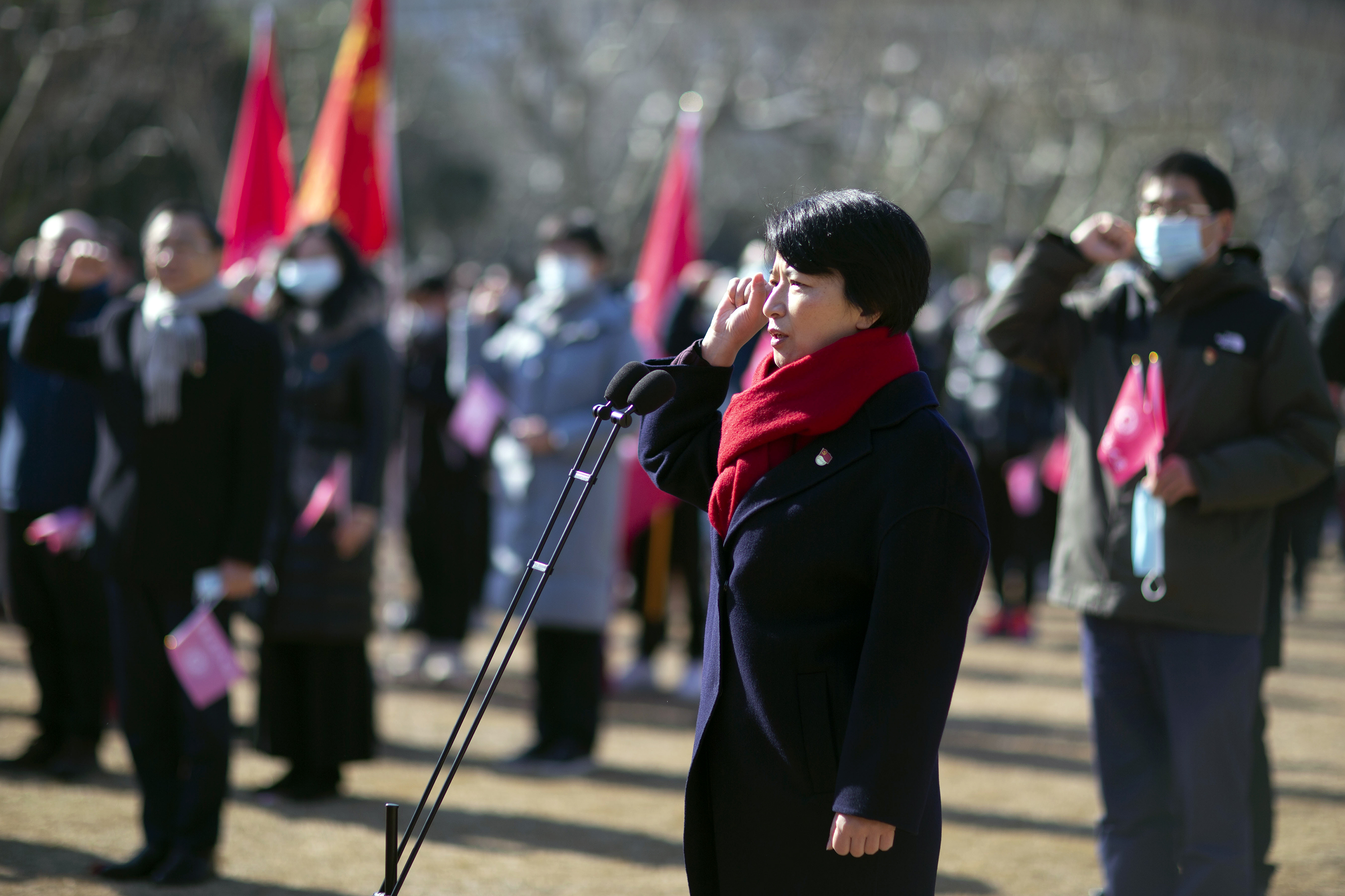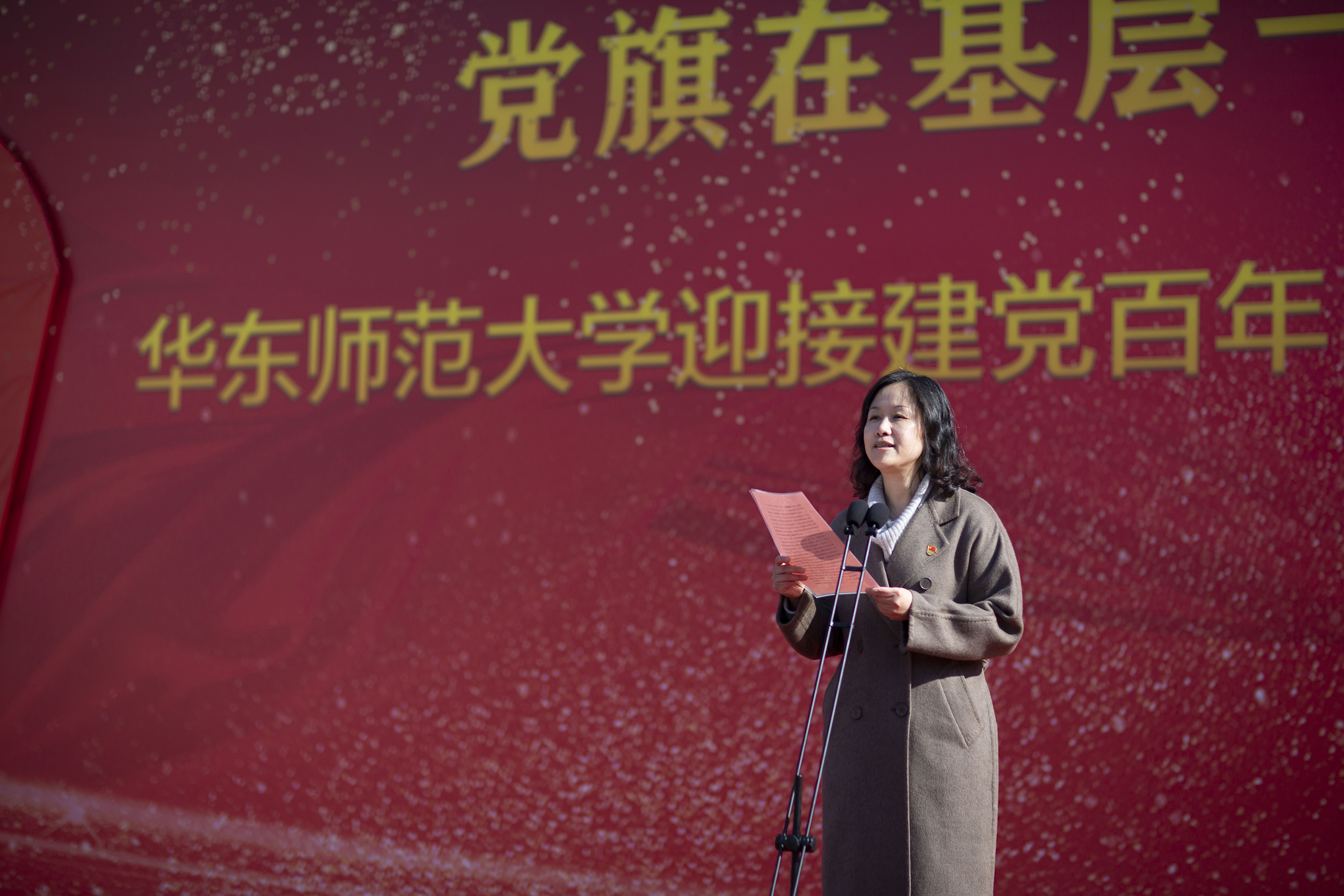 华东师大党委书记梅兵带领现场的党员师生集体重温入党誓词