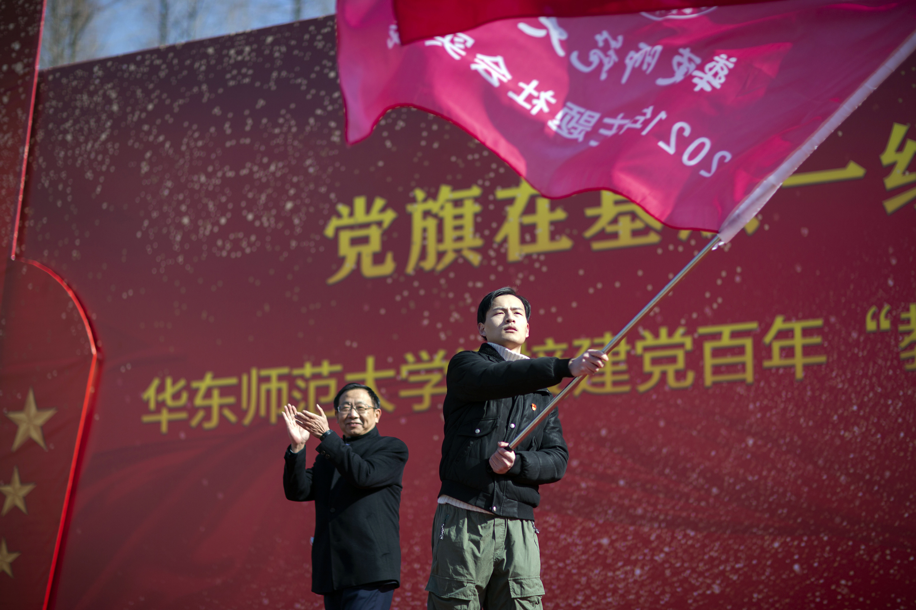 党旗所指,即是胜利所向。在火红的党旗下,华东师大党委书记梅兵带领现场的党员师生集体重温入党誓词,并寄语各基层党组织的“助梦人”充分发挥基层党组织的战斗堡垒作用和党员的先锋模范作用,以一往无前的奋斗创新精神和实际行动助力梦想飞翔,让鲜艳的党旗高高飘扬在祖国教育的最基层!