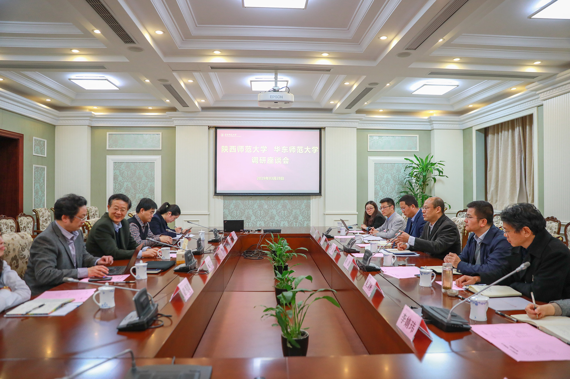 3月28日,陕西师范大学副校长李磊一行来访3245澳门新莆京,双方就教师教育、学科建设、绩效管理、学校发展规划等议题进行座谈交流。华东师大副校长李志斌、相关职能部门负责人出席会议。