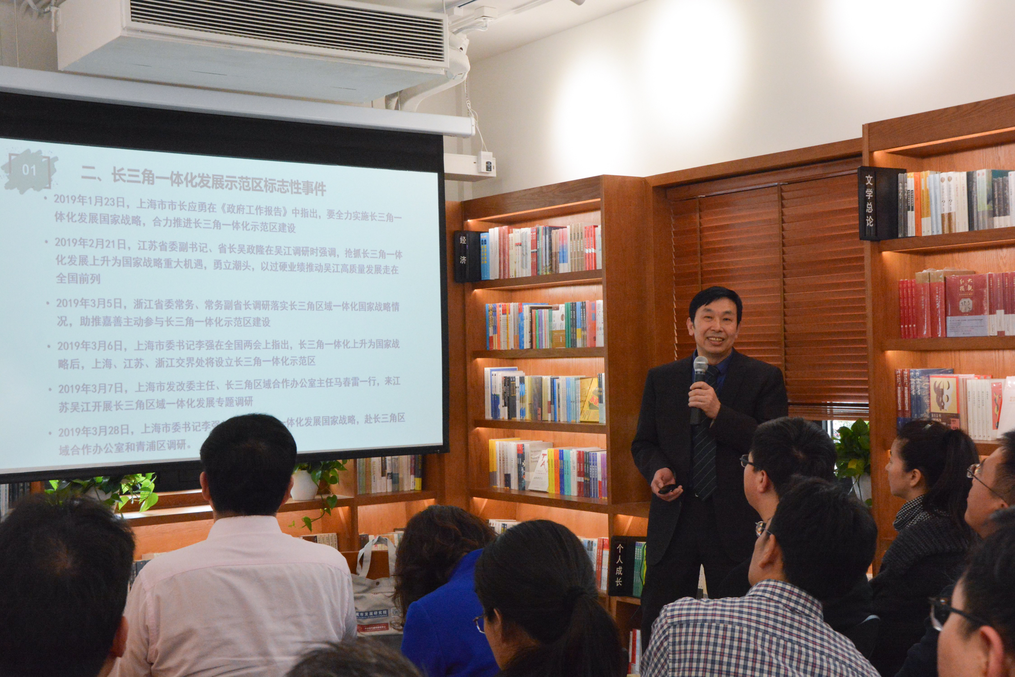 围绕“如何建好长三角一体化示范区”这一主题,曾刚指出,长三角城市群2017年GDP规模已超越伦敦城市群,逼近欧洲西北城市群,而且其成长性远超其他城市群。作为长江经济带的龙头地区及我国开发区的成功模式,长三角示范区的建设呼之欲出。为实现“努力打造贯彻新发展理念的新标杆、一体化体制机制的试验田及引领长三角更高质量一体化发展的新引擎”的期望目标,长三角示范区当下应瞄准国际一流目标,科学谋划示范区的建设工作。曾刚结合德国及欧盟的发展经验指出,长三角示范区的建设工作应在借鉴域外经验,转变发展思路;对标世界一流,开展示范区顶层设计;调动社会力量参与示范区建设的积极性,建设创新集群以及改革园区运营模式,突破行政地域约束等四个方面重点着手。
