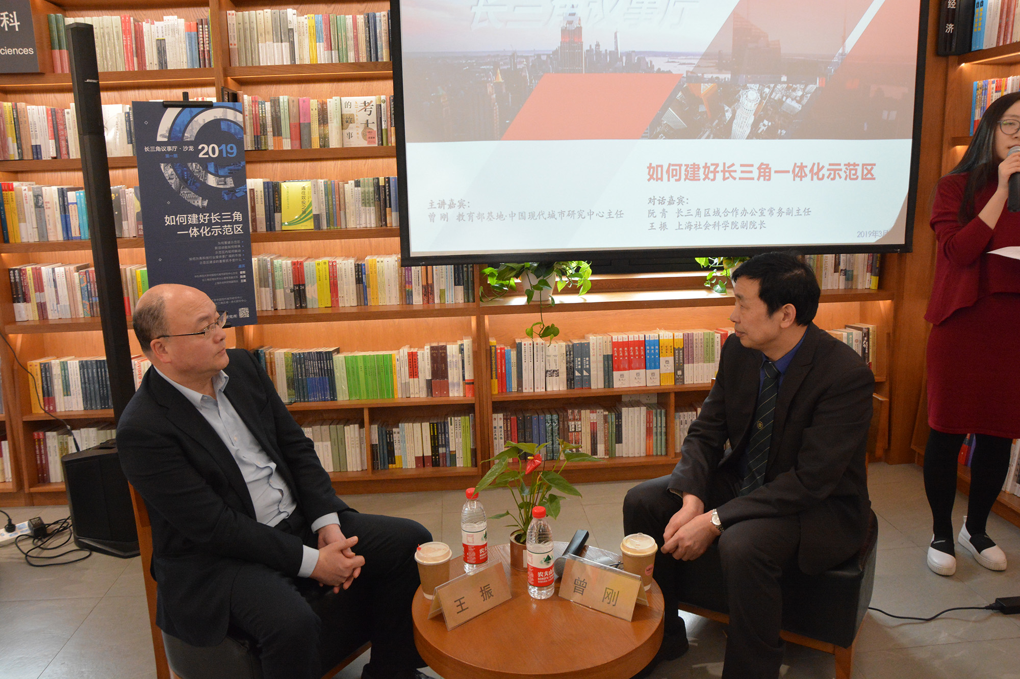 首期“长三角议事厅”沙龙的主题为“如何建好长三角一体化示范区”。沙龙邀请了中国现代城市研究中心主任、华东师大城市发展研究院院长、华东师大终身教授曾刚和上海社会科学院副院长、长三角与长江经济带研究中心常务副主任王振教授担任嘉宾,同台共话长三角一体化示范区如何联动发展。该沙龙通过中国现代城市研究中心、城市发展研究院和澎湃的公众号共同发布,不仅吸引了复旦大学、上海社科院、上海市政府研究中心等机构的研究人员的聆听,也有第一财经、上海证券报等媒体的报道,还有来自安徽合肥、浙江杭州、江苏南京和苏州等地区的学者和企业界人士前来。