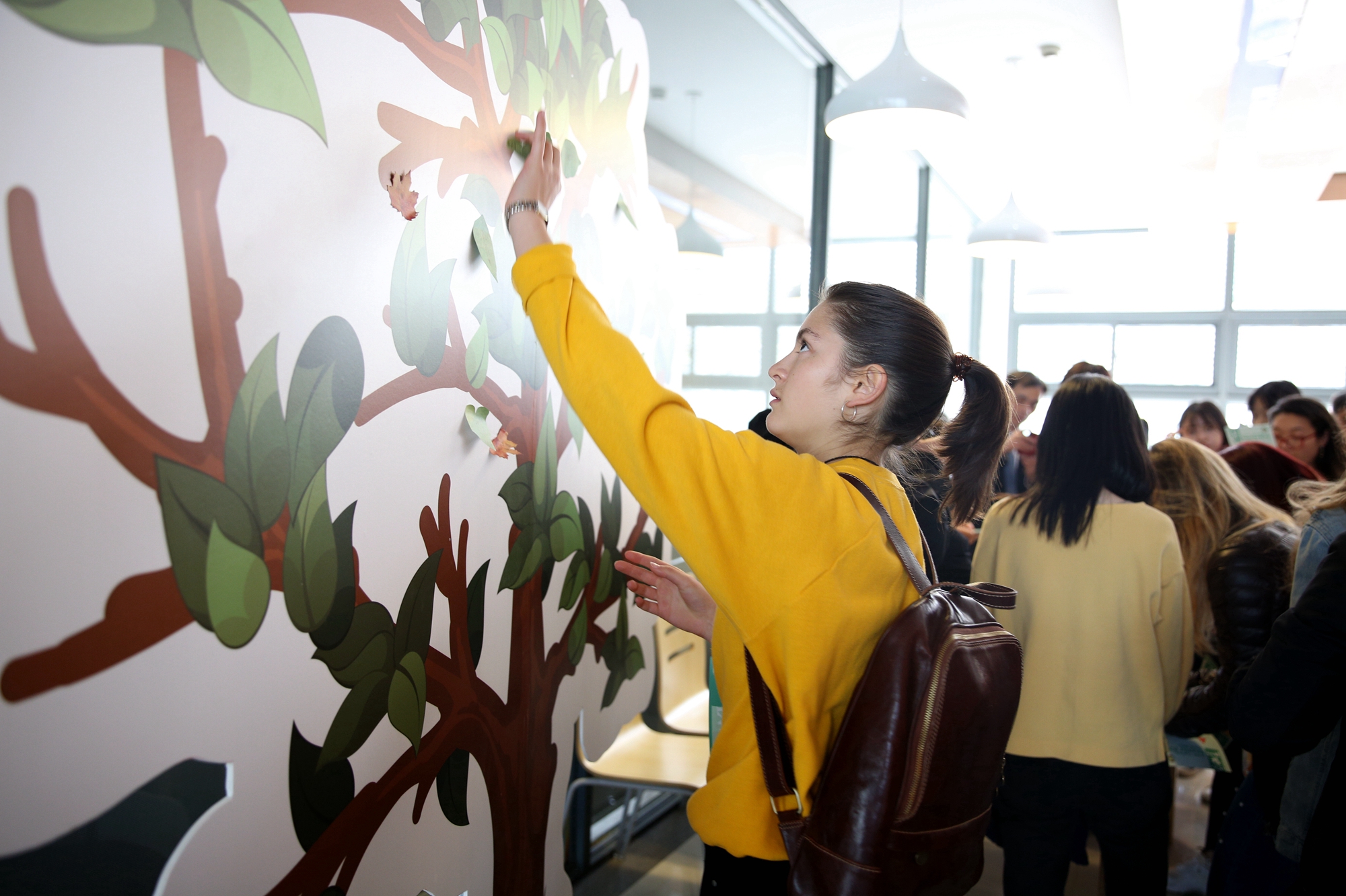 活动上,留学生们首先在共享空间的手工“生态树”上贴上心愿树叶,传达了保护美丽地球、共绘绿色未来的美好期许和祝愿。紧接着,在场师生共同观看了垃圾分类宣传片,充分学习如何区分有害垃圾、可回收物、湿垃圾和干垃圾等专业知识,学生们积极互动,响应热烈。生动的宣传片为日后垃圾分类的实际操作提供了更加直观的帮助。