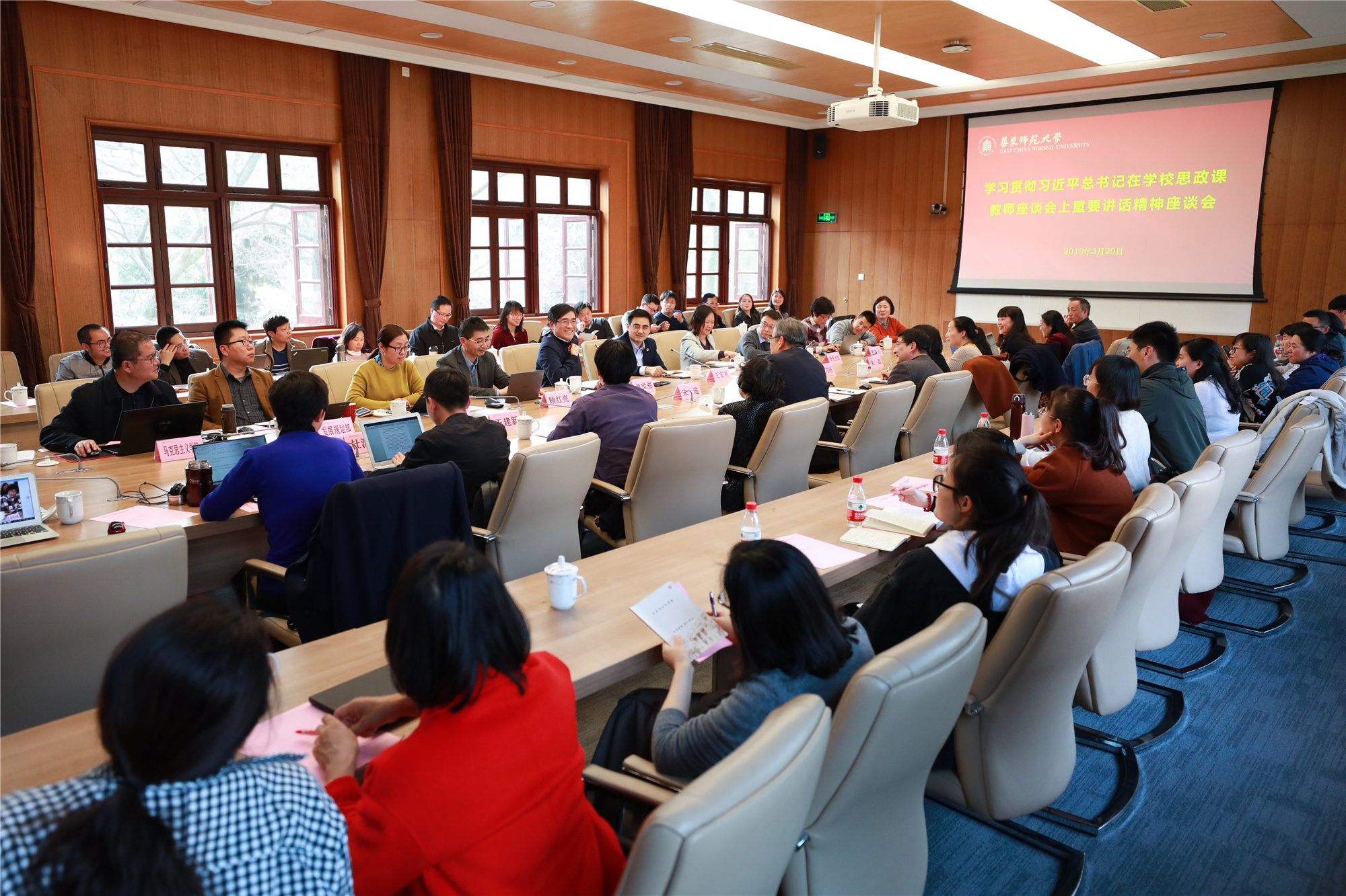 3月20日下午,“学习贯彻习近平总书记在学校思想政治理论课教师座谈会上重要讲话精神”座谈会在校举行。校党委书记童世骏,校党委常务副书记王宏舟,校党委常委、宣传部部长、马克思主义学院院长顾红亮,校党委常委、组织部部长程静出席会议,学校相关职能部门负责人,马克思主义学院党政班子成员和师生代表等参加座谈交流。座谈会由王宏舟主持。