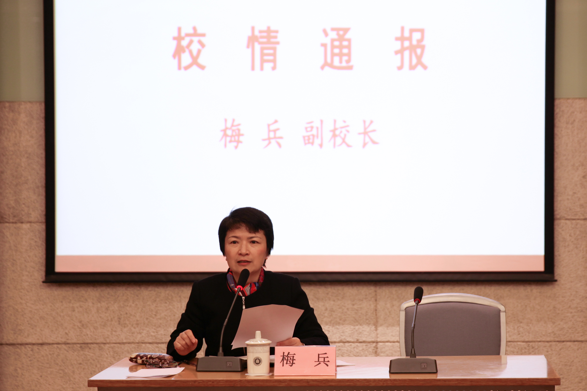 副校长梅兵作校情通报