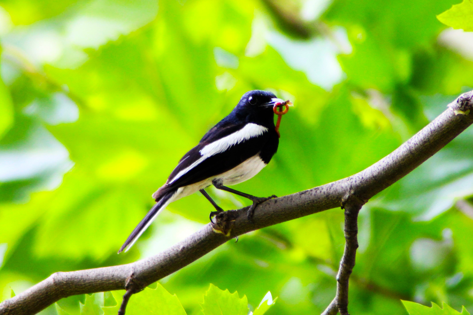 浑身黑白相间的鹊鸲
