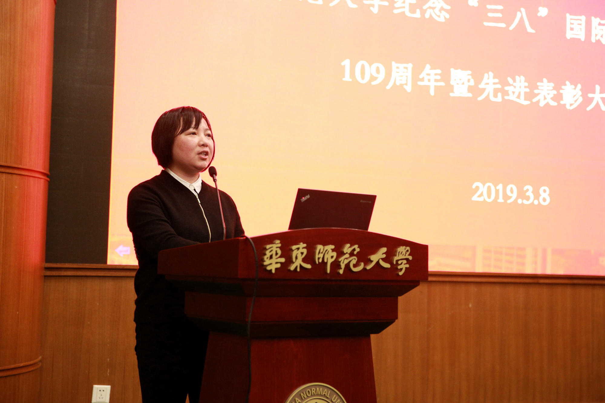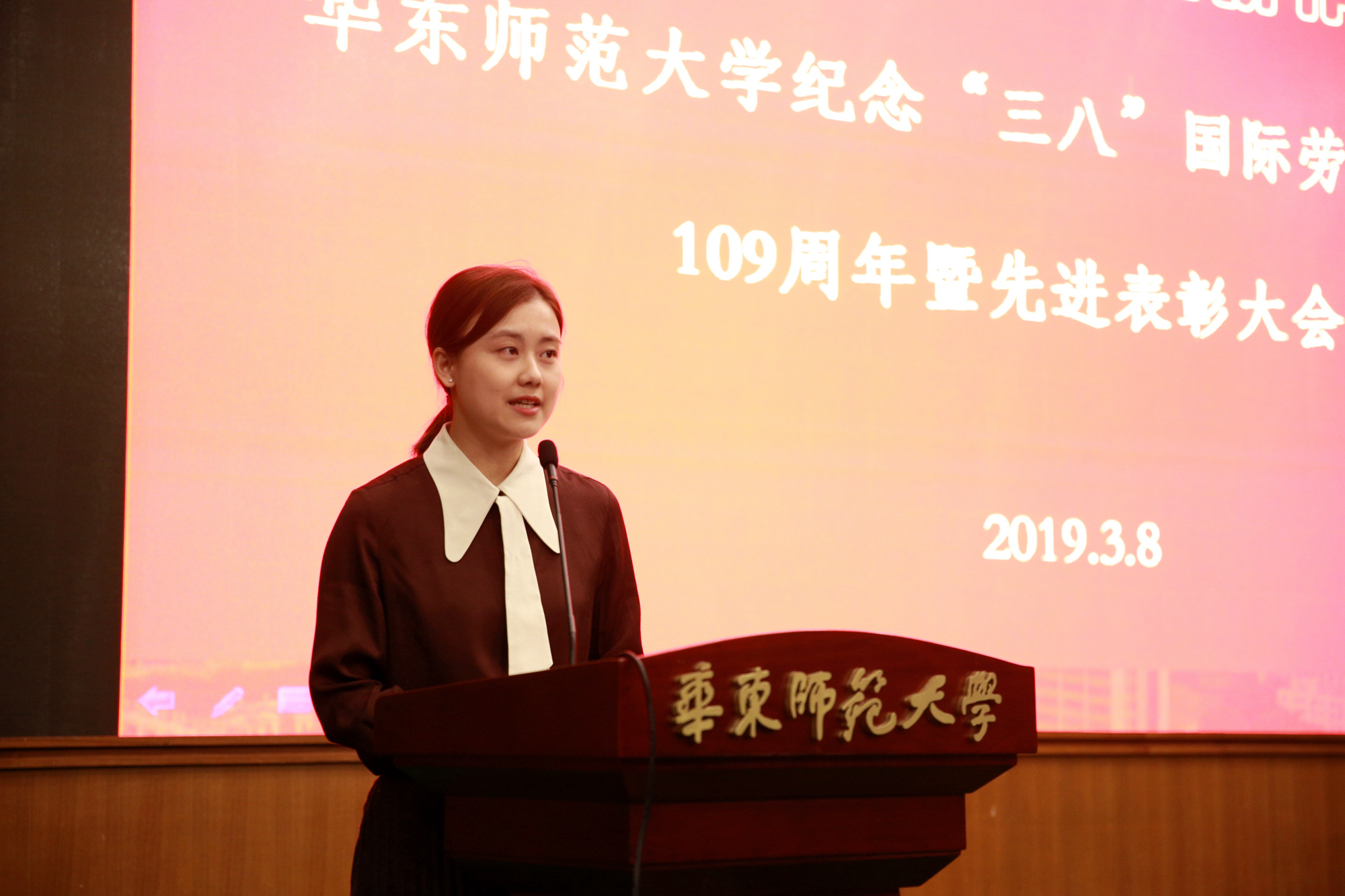 校“十佳女大学生”代表、经济与管理学部2016级硕士生王诗乐,上海市教育系统“三八红旗集体”教育学部学生事务部代表沈晔,以及上海市“三八红旗手”获得者、化学与分子工程学院田阳教授在会上先后作了交流发言。