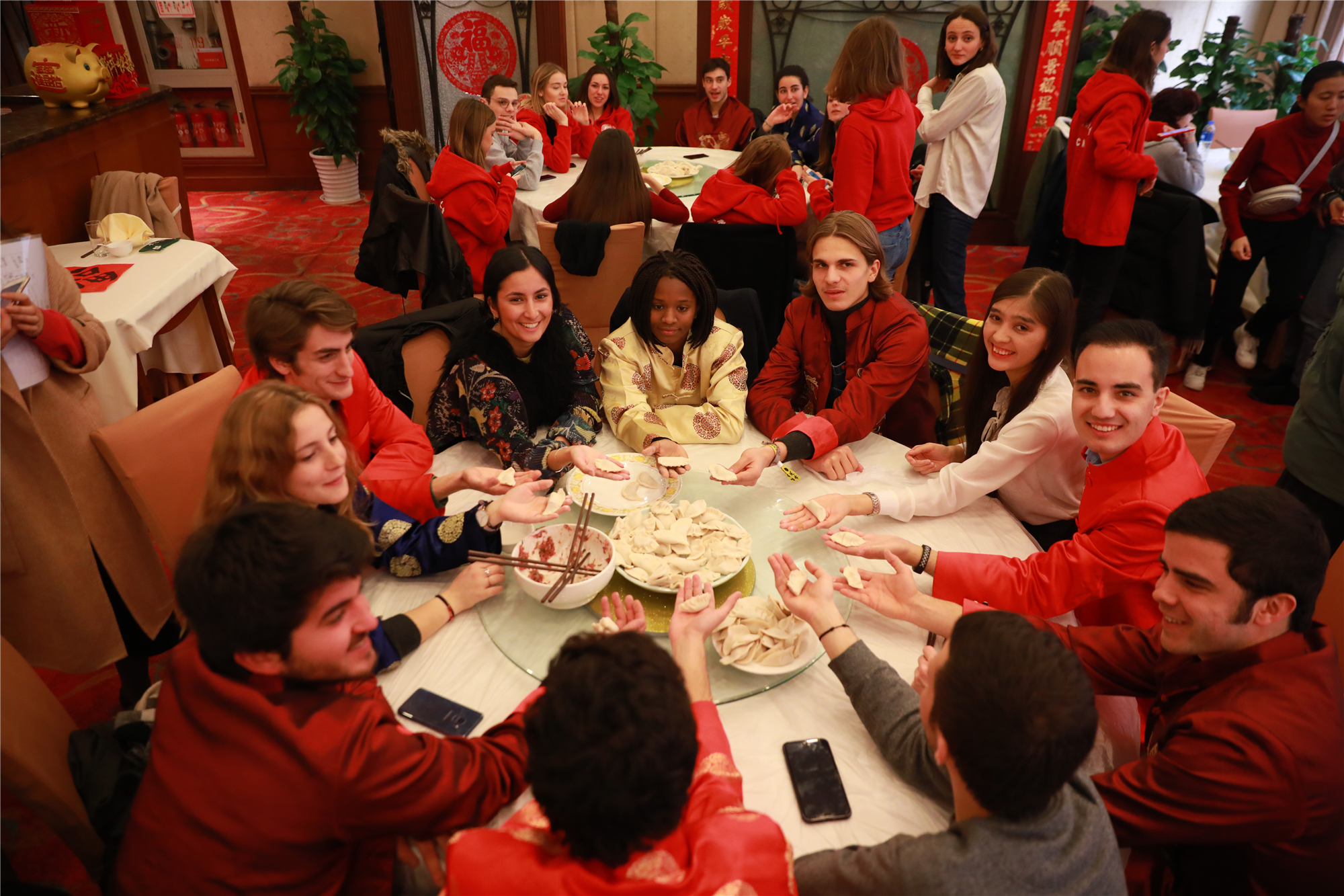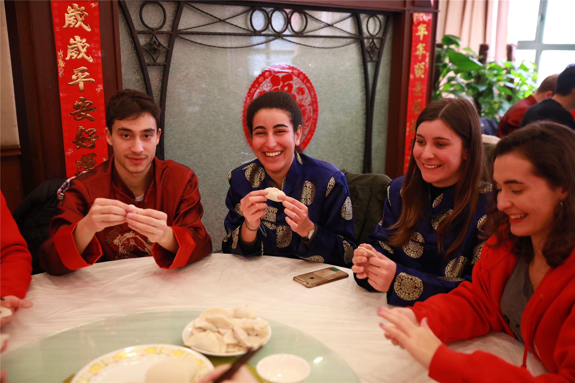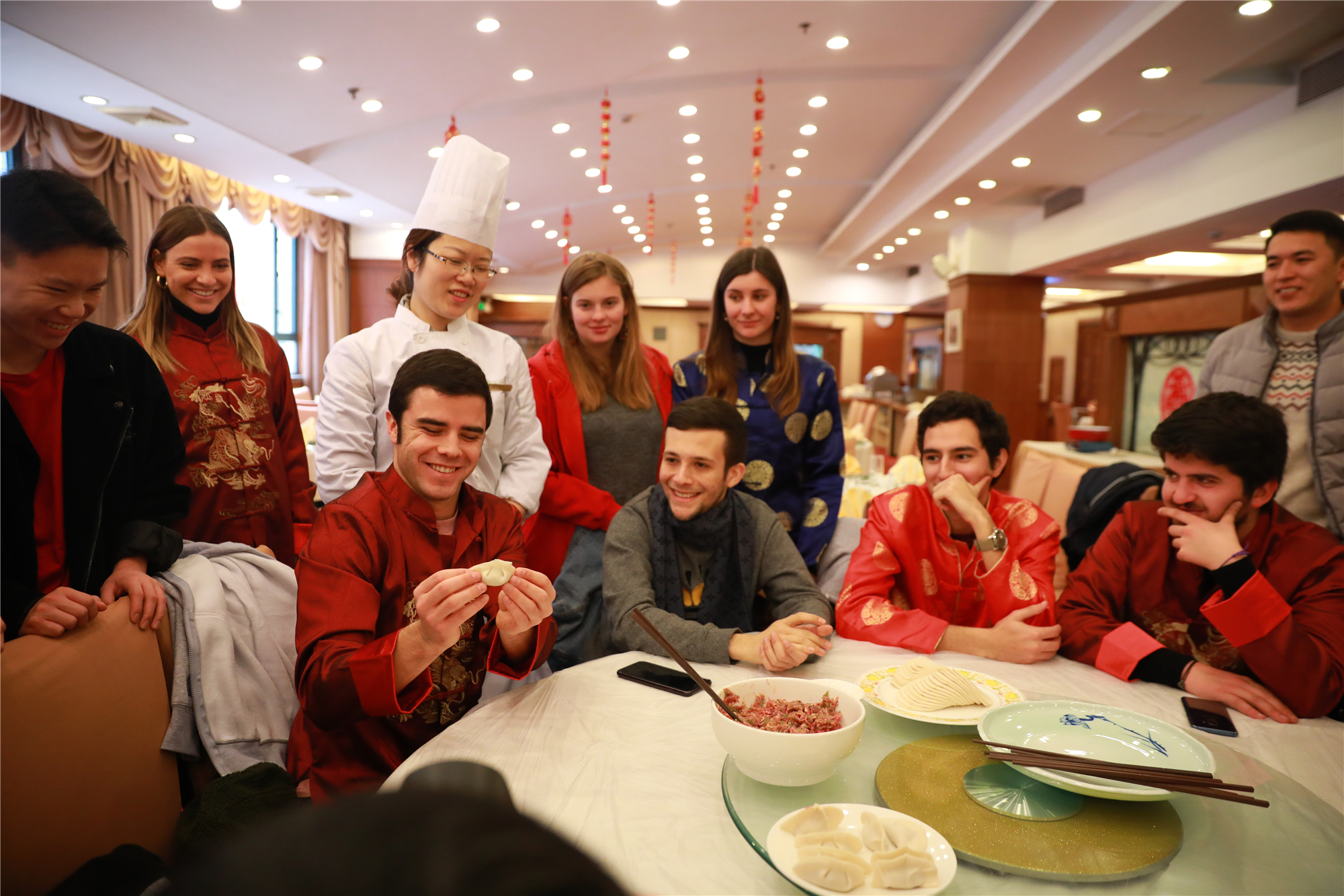 通过写春联,留学生们互道祝福;而围成一桌包饺子,更让他们在感受传统中国文化的同时,增进了彼此的友谊。通过写春联,留学生们互道祝福;而围成一桌包饺子,更让他们在感受传统中国文化的同时,增进了彼此的友谊。同学们跟着师傅,学习擀饺子皮、包饺子馅儿。当吃到自己包的热气腾腾的美味饺子时,他们对中国文化有了新的感知。