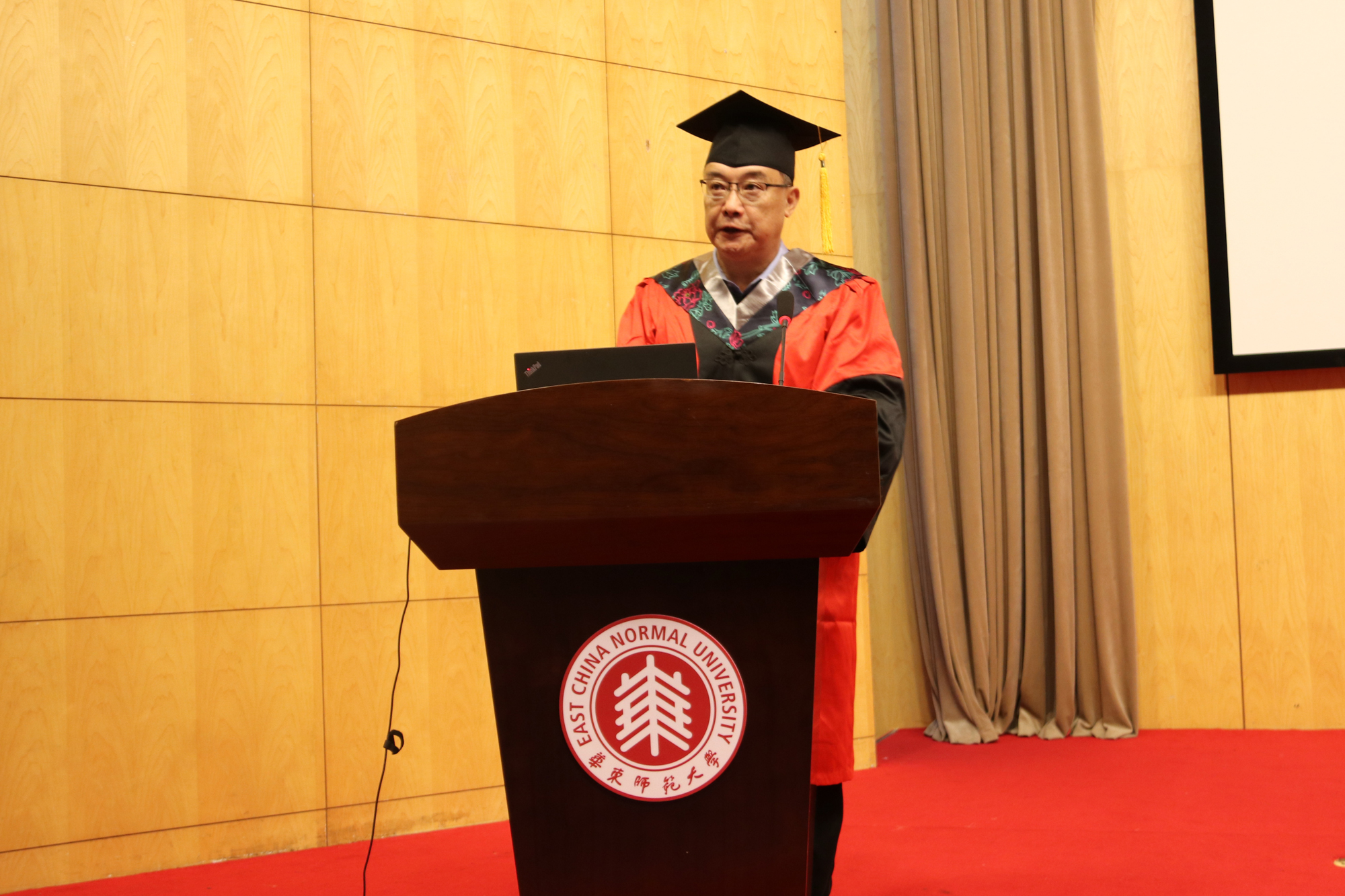 典礼在庄严肃穆的国歌声中拉开了序幕。张文首先向顺利完成学业并获得教育硕士专业学位的同学们表示祝贺,他向为我校教育硕士研究生培养工作付出辛勤劳动的全体导师和积极支持同学们刻苦学习的亲友,表示崇高的敬意和衷心的感谢。张文引用习近平总书记在全国教育大会上对教师的期望与要求,指出做老师就要淡泊名利,热爱教育。他希望同学们牢记“求实创造,为人师表”的校训,成为具有高尚师德的优秀教师。最后,张文希望同学们关心和支持母校,为母校的发展作贡献,常回母校看看。