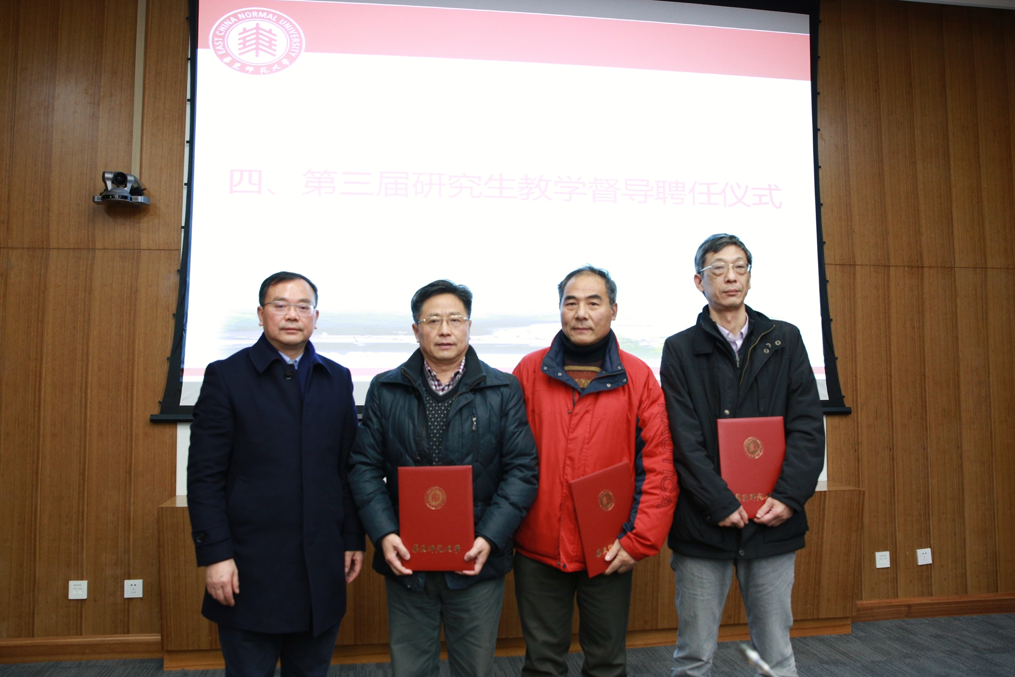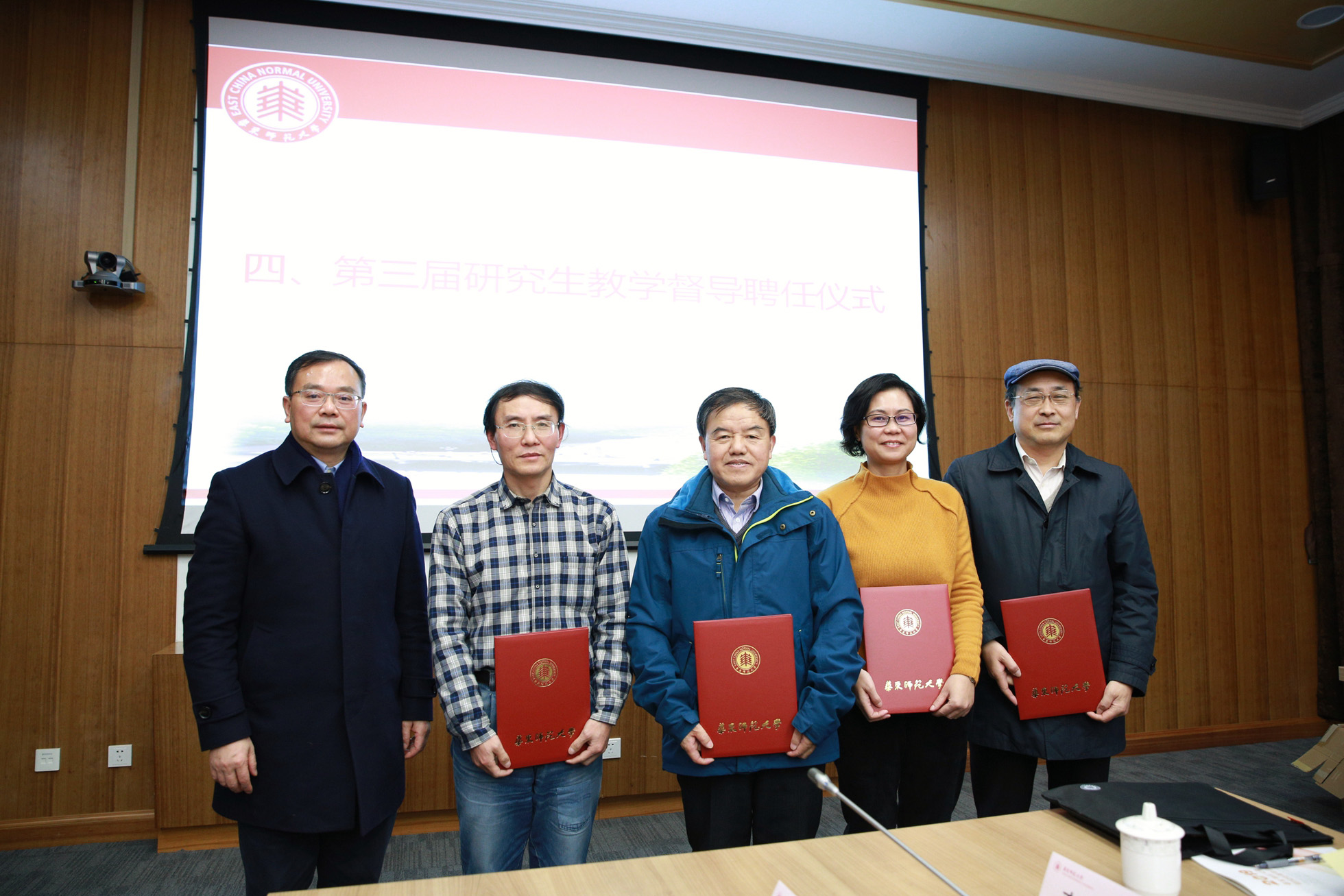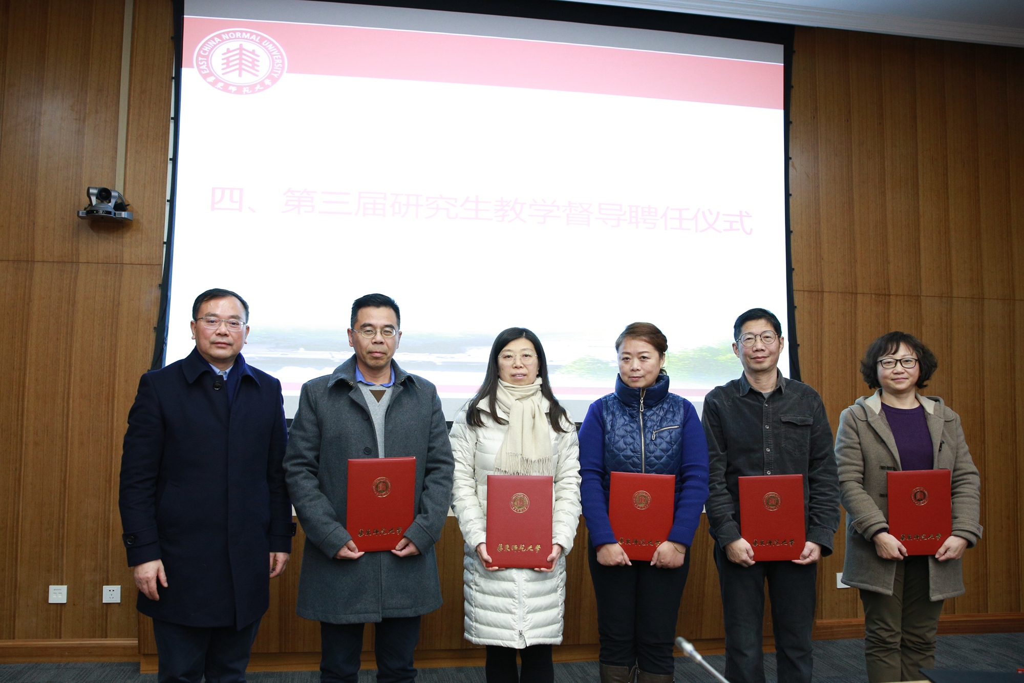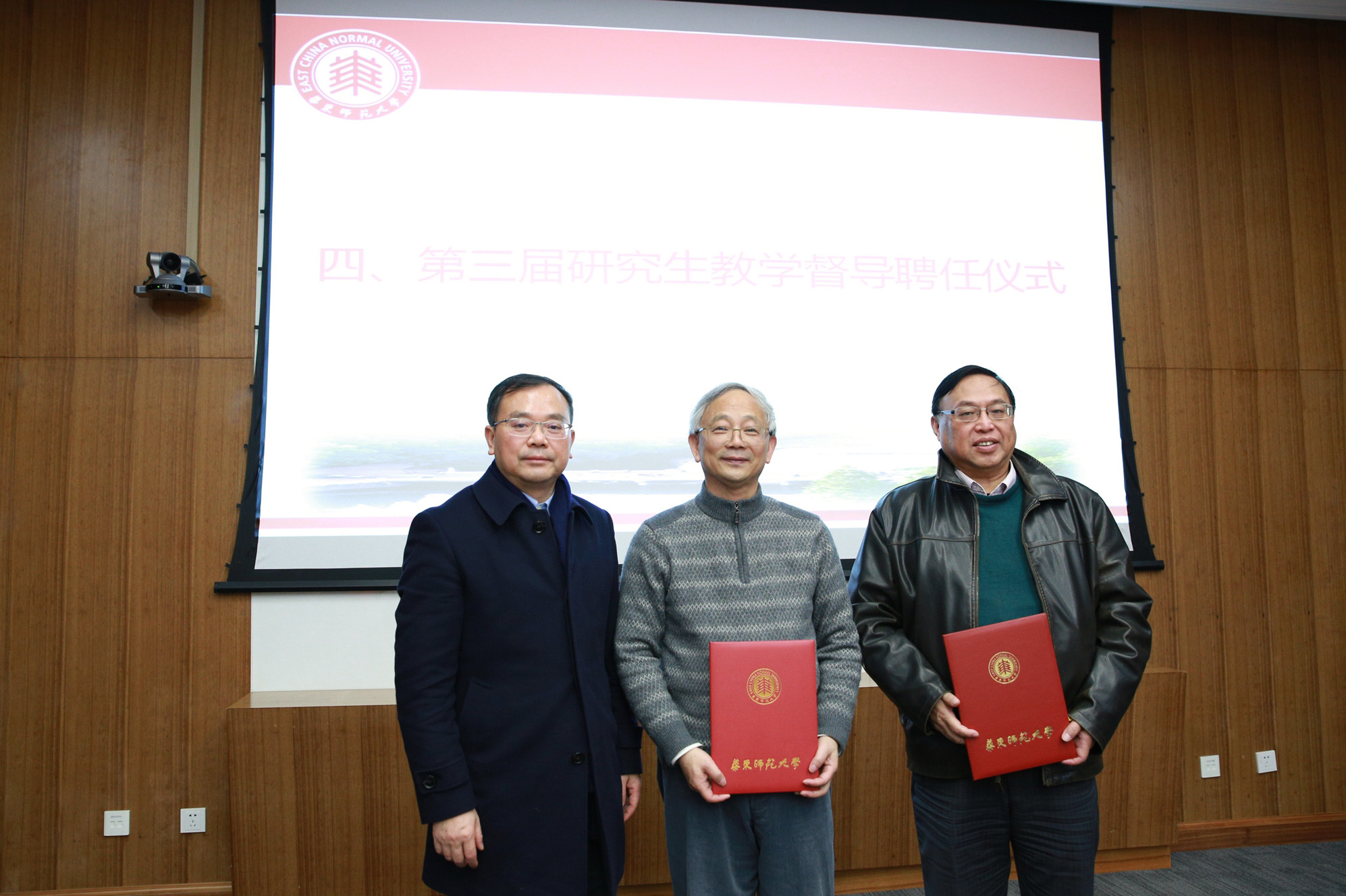 随后,研究生院培养办公室主任陈灵犀对第三届研究生教学督导换届工作进行了汇报,从教学督导组的构成、督导组成员产生方式、督导组工作职责,以及督导工作形式多个方面详细汇报了第三届督导人员的产生过程。接着张文宣读了《3245澳门新莆京“关于公布第三届研究生教学督导名单的通知”》文件。第三届研究生教学督导由32名教师组成,由化学与分子工程学院何品刚教授任组长,国际汉语文化学院吴勇毅教授任副组长。分设3个小组,中北组11人,闵行文科组12人,闵行理科9人。周傲英为第三届教学督导颁发了聘书并合影留念。