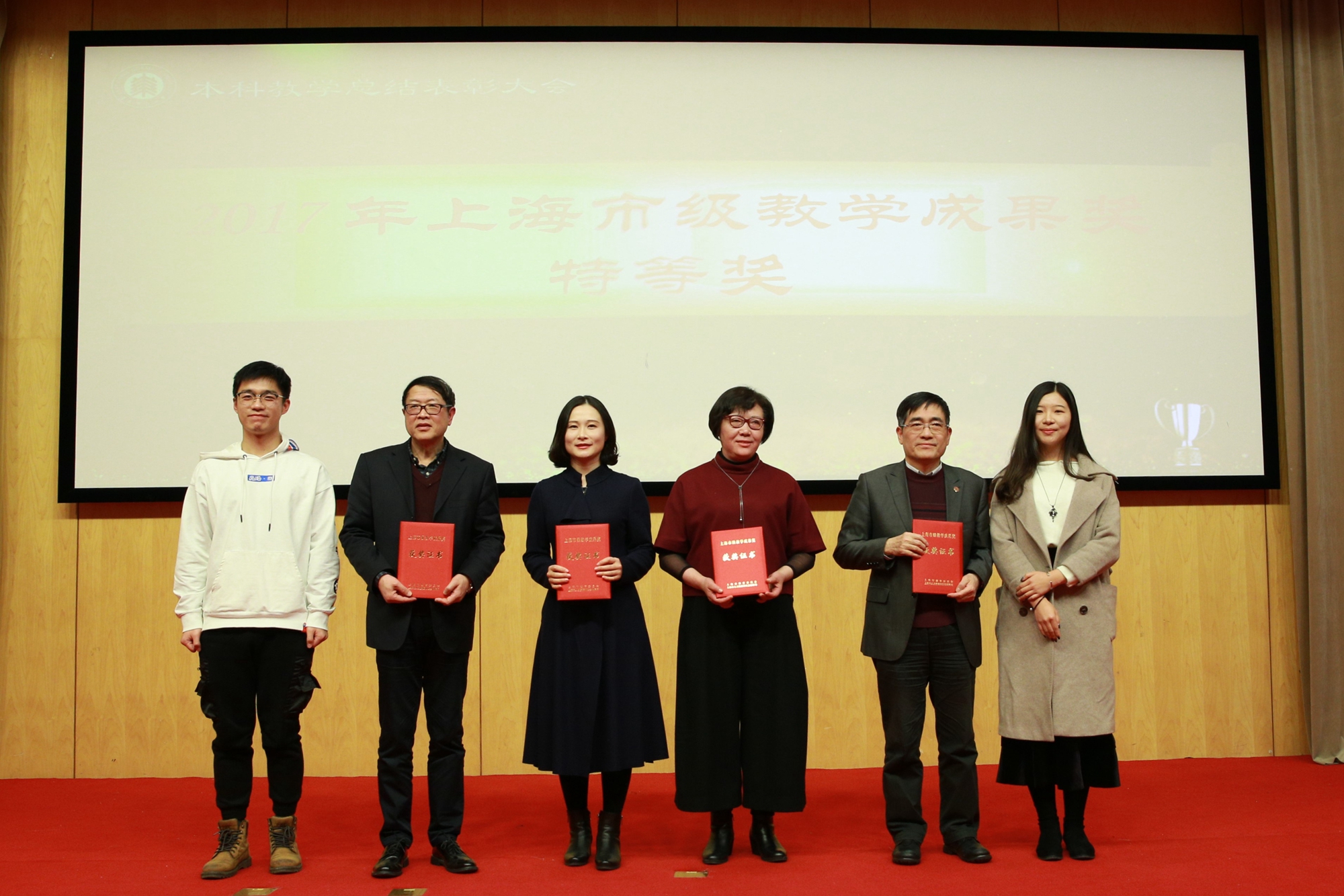 2018年,我校共50项成果荣获2017年上海市级教学成果奖,获奖总数排名上海高校第三。其中,我校作为第一完成单位荣获特等奖4项,一等奖22项,二等奖23项;作为第二完成单位,荣获一等奖1项。来自孟宪承书院、经管书院、大夏书院、光华书院的6位学生代表分别为获奖教师代表献上荣誉证书。