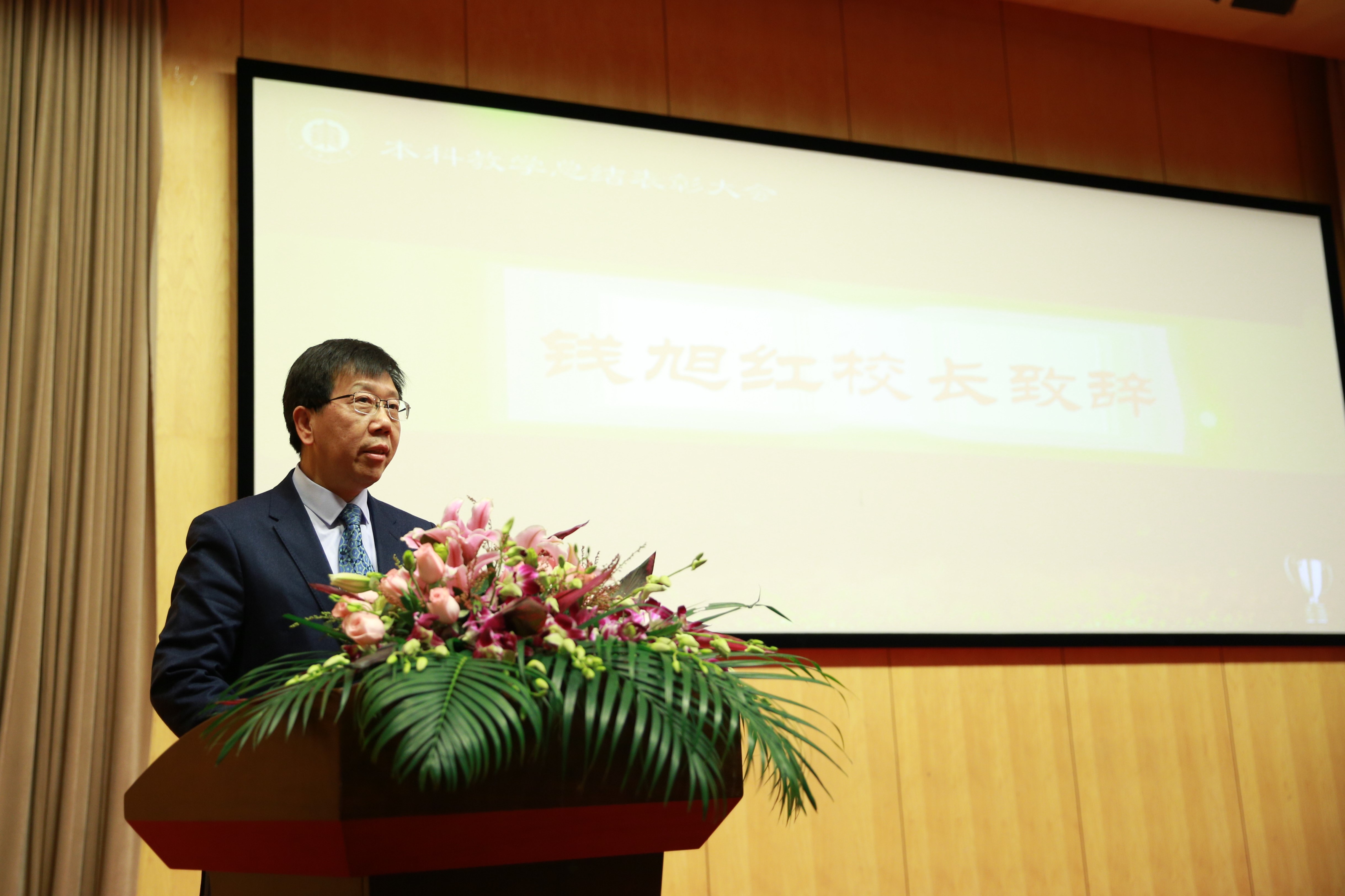 钱旭红在致辞中代表学校向获奖的优秀师生表示祝贺和敬意,向长期奋战在本科教学一线的广大教师和教学管理人员表达了衷心的感谢,并回顾了我校过去一年围绕“打造一流本科”所做的有益探索和实践。钱旭红强调,在推进“双一流”建设的过程中,要更加主动地把本科教育放在人才培养的核心地位、教育教学的基础地位、新时代教育发展的前沿地位。同时,还要把人才培养的质量和效果作为检验一切工作的根本标准。钱旭红希望大家继续凝心聚力,以本科教育为本,坚持“四个回归”,通过推进专业特色和内涵建设、加强通识教育和优质课程建设、深化教师教育改革、构建实践育人共同体、推进创新创业教育改革、深化国际交流合作、加强质量文化建设等关键举措,使学校的人才培养工作更上一层楼。