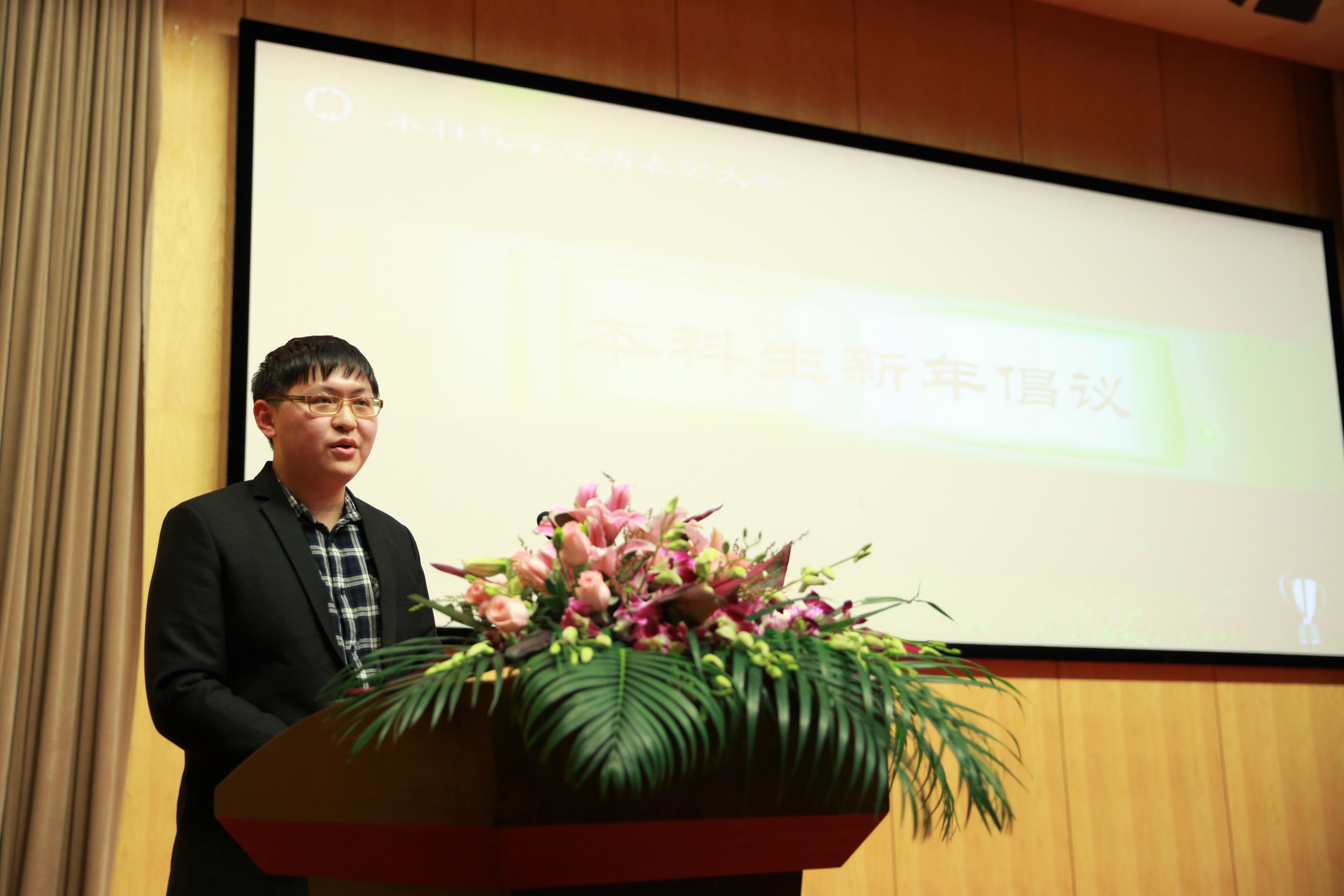 会上,化学与分子工程学院陈子晗同学向全校本科生发出新年倡议。他感谢学校和学院为本科生开展科研训练提供了优质的师资、平台和资源,感谢各位老师的辛勤培养和专业指导,感谢实验室团队的相互鼓励与合作。他号召同学们在新的一年整装待发,充满自信地在各个领域再创佳绩。