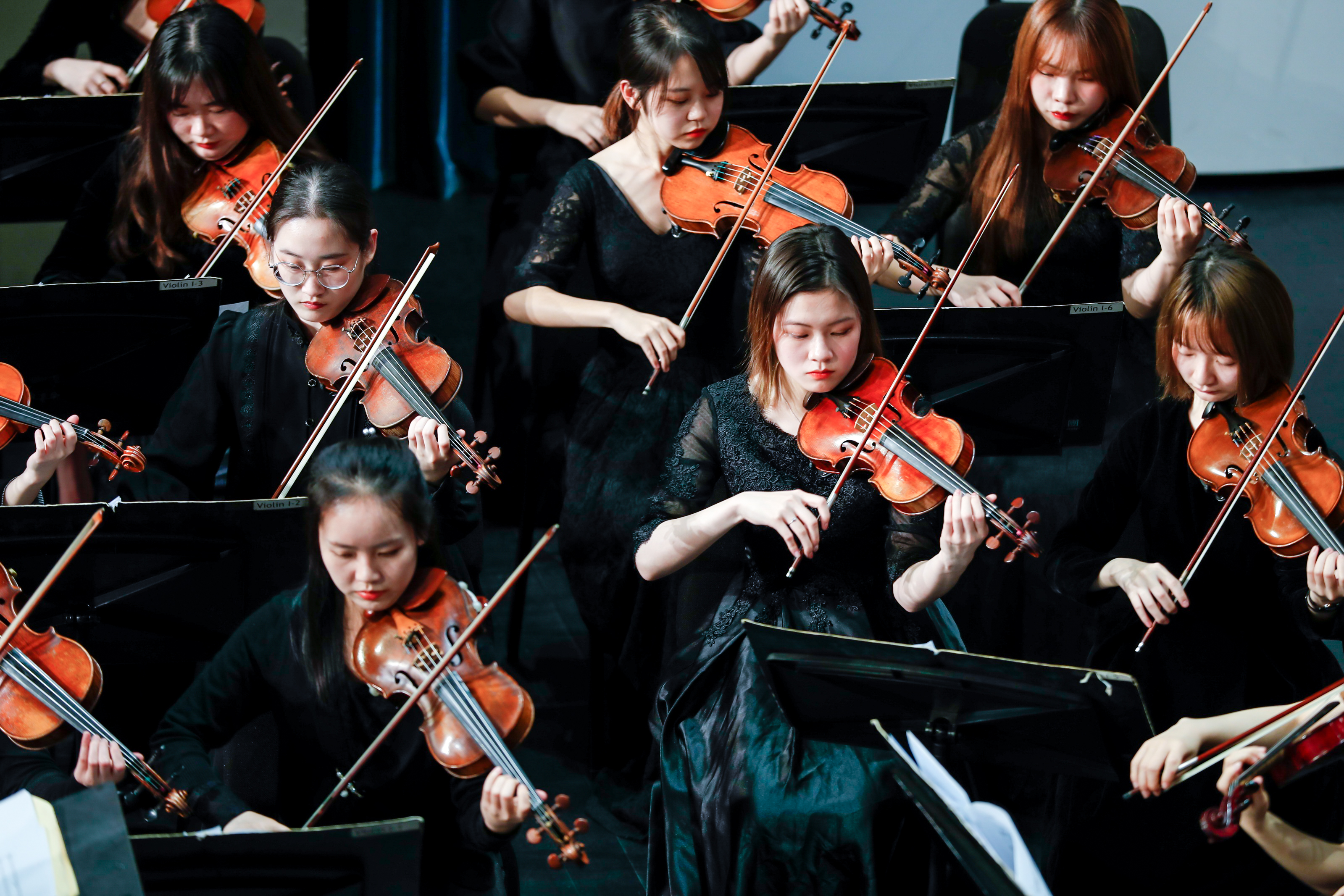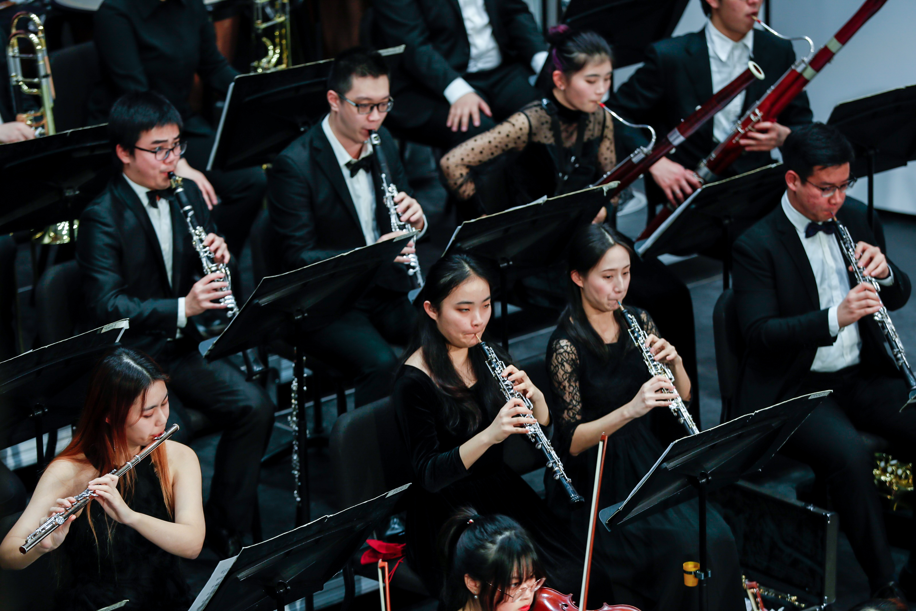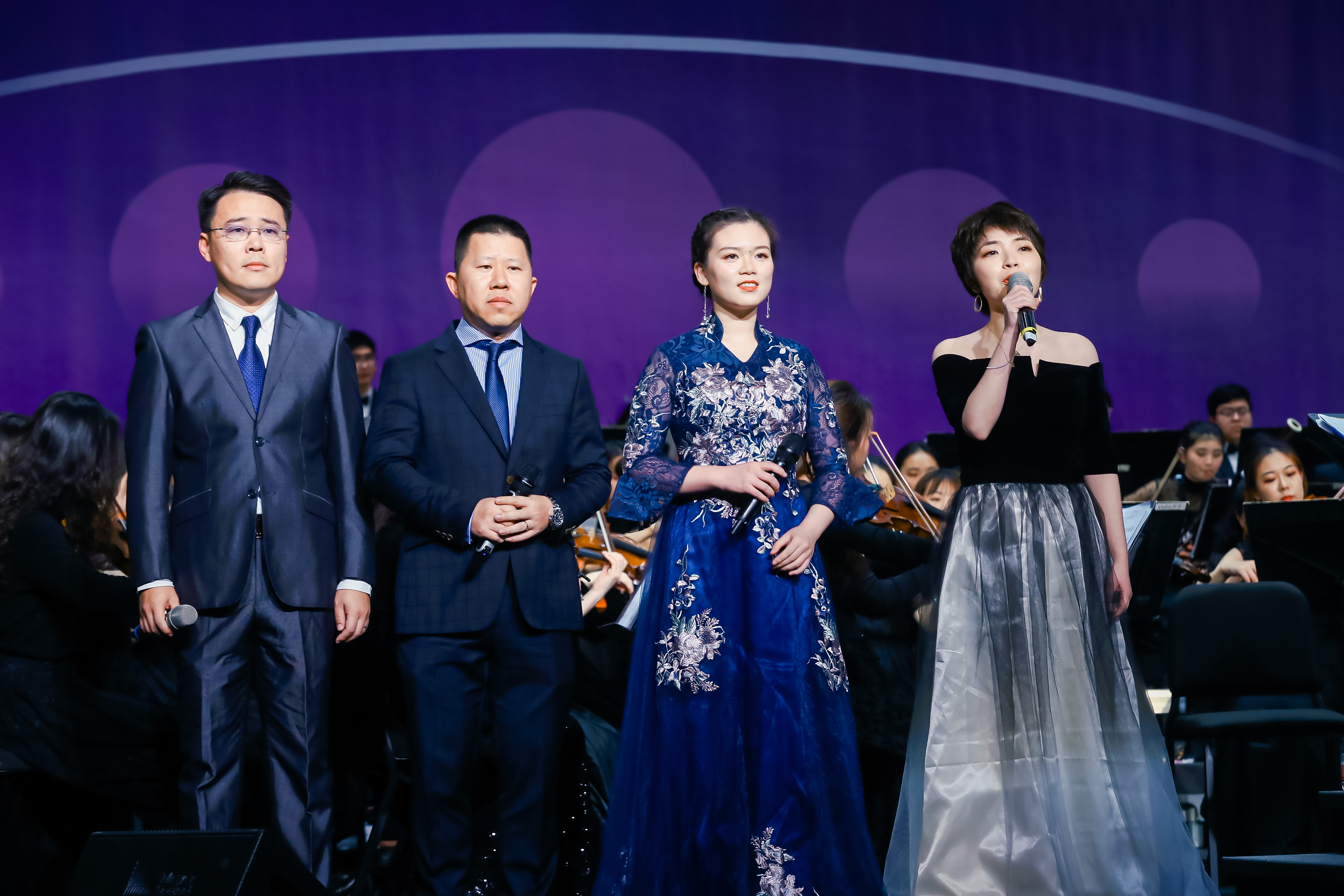 音乐会由著名小提琴演奏家、指挥家、音乐学院常林教授执棒,华东师大交响乐团纯熟的演奏技巧和饱满的舞台张力,为观众们呈现了一台中外优秀音乐文化相融合的视听盛宴。音乐会在一曲热烈欢快的《春节序曲》中拉开序幕;音乐学院副院长、中国当代优秀钢琴家张薇副教授的钢琴独奏《黄河颂》以壮阔的意境表达对祖国和民族的无限深情;原上海市教卫工作党委书记、上海市艺术教育委员会主任、上海市艺术教育协会会长陈克宏,原上海市教育委员会副主任、上海市艺术教育委员会副主任李瑞阳,奥盛集团有限公司董事长汤亮校友和华东师大党委常务副书记王宏舟作为神秘嘉宾登台献唱《在那遥远的地方》和《鸿雁》,向师大70周年华诞献礼;历届“校园十大歌手”得主代表孙骏、顾斐、胡乐野、傅彦斌、铁悦心、陆韵琇、陶佳宁和石评月等带来《上善若水》等三首校庆主题歌曲联唱,深情歌咏了师大精神;音乐学院特聘教师、上海交响乐团李笑男博士的小号独奏《天空之城》尽显师大的沉静美好;音乐学院师生创作的管弦乐《丽娃河畅想曲》将丽娃河的钟灵毓秀和吾辈师大人的奋发昂扬演绎得淋漓尽致;青年笙演奏家张梦带来了《挂红灯》,欢快轻盈,舒美流畅的曲风中洋溢着新年祝福与美好愿望;音乐学院特聘副教授汤非、副教授石春轩子与学生艺术团VIVA合唱团共同演绎的《不忘初心》,以“万水千山不忘来时路”,激起人们心中无限的爱国情怀;小荧星合唱团压轴登台唱响《蓝色多瑙河》和《友谊地久天长》,童音纯净宛如天籁,入耳入心,将现场气氛推向高潮。