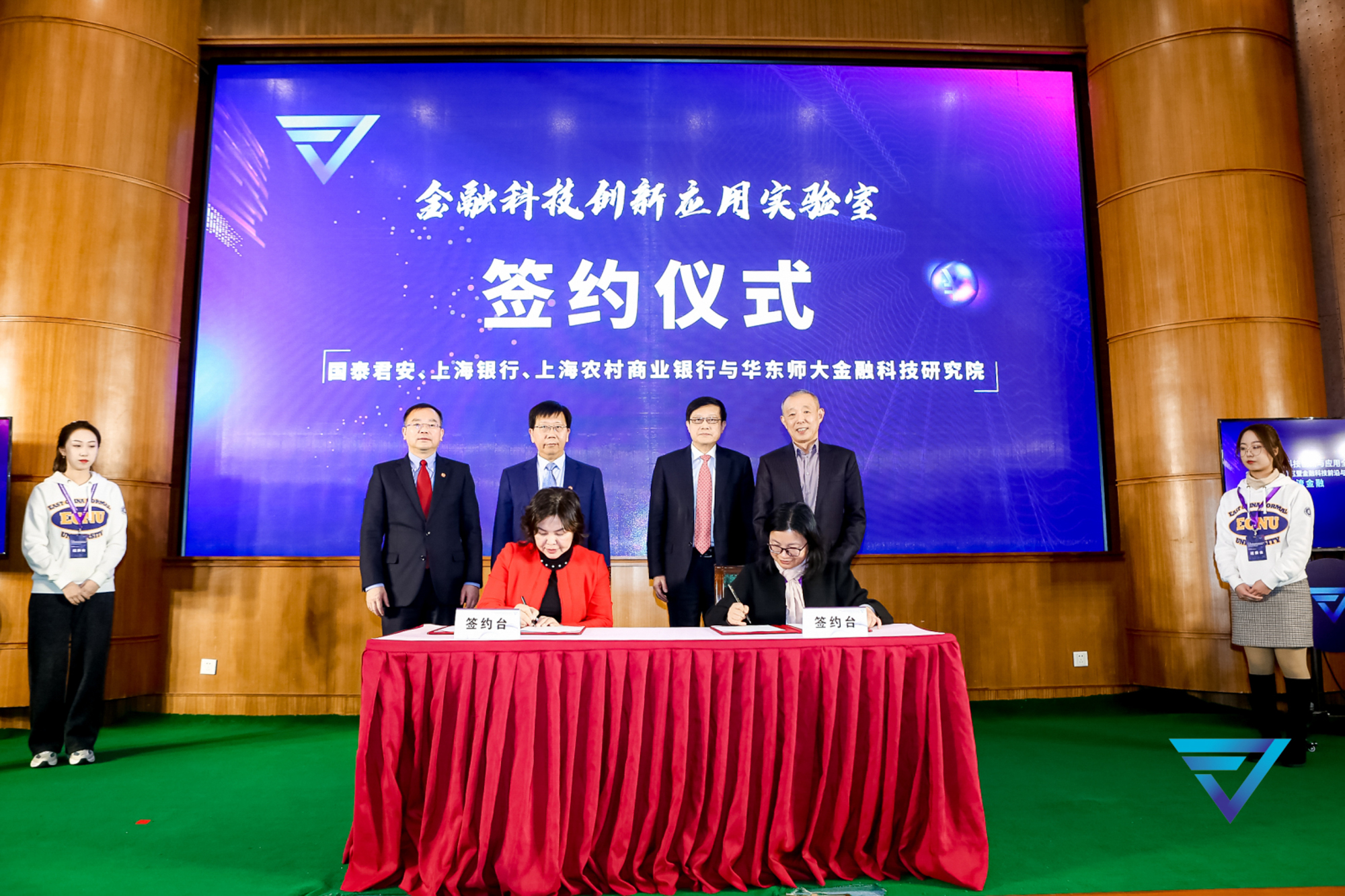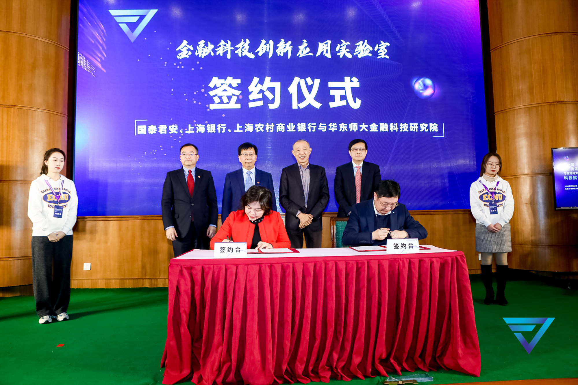 会上,在华东师大校长钱旭红、副校长周傲英,中国首席经济学家论坛理事长连平,以及亚商集团董事长、华东师大金融科技研究院理事长陈琦伟的共同见证下,“金融科技创新应用实验室”签约仪式举行。国泰君安证券股份有限公司首席信息官俞枫、上海银行信息技术部副总经理朱英华、上海农村商业银行首席信息官周衡昌依次与华东师大经济与管理学部党委书记、金融科技研究院院长岳华签署“校企”战略合作协议,共同开启“金融科技创新应用实验室”校企合作新篇章。