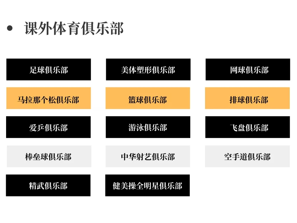 普通俱乐部(已推出14家):促进全员参与,帮助学生专注于喜爱的体育项目,并获取运动积分。