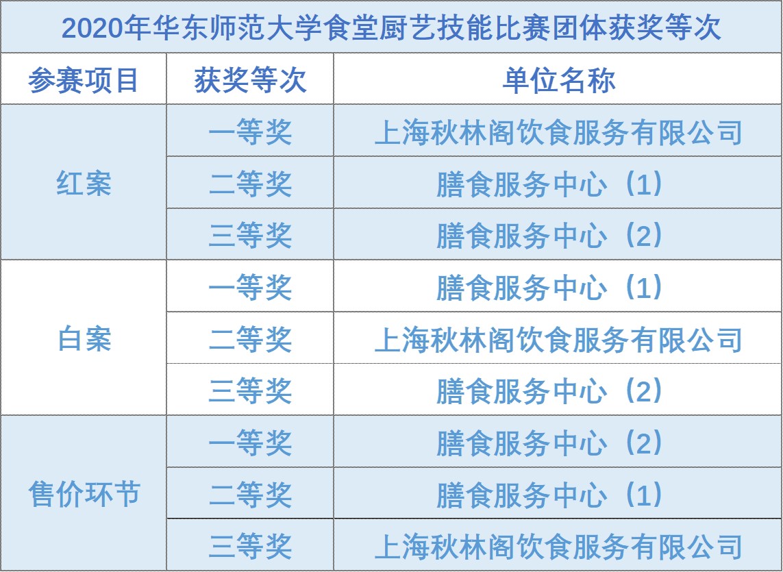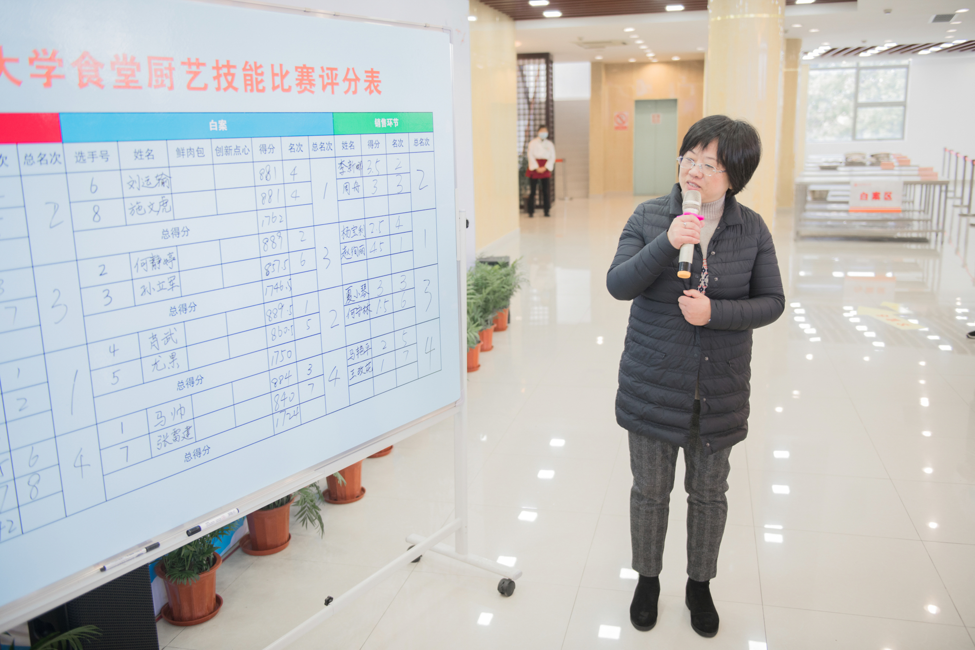 为体现公平、公正,比赛邀请了上海市学校后勤协会、协会餐饮专业管理委员会等校外、校内5名专家担任评委,评委们根据参赛作品的色、香、味、形、刀工、创新性、操作性和合理性等方面进行综合评判。比赛结果由后勤党工委书记万明霞宣布。