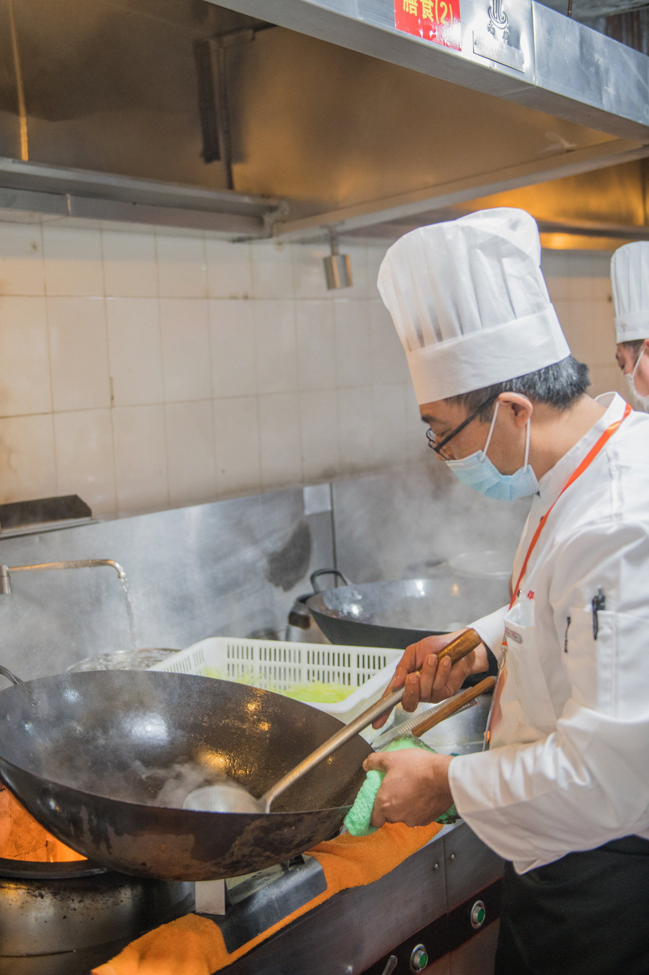 根据比赛规程,各代表队要在90分钟内完成4道菜(红案和白案各2道)的操作,要求参赛选手每道工序独立完成,从原材料切配、形状造型、上灶烹饪到成品,综合色泽、香气、调味、刀工、口感、营养等方面进行厨艺技能考量;出售环节则从打菜精准度和计价准确度进行考核。