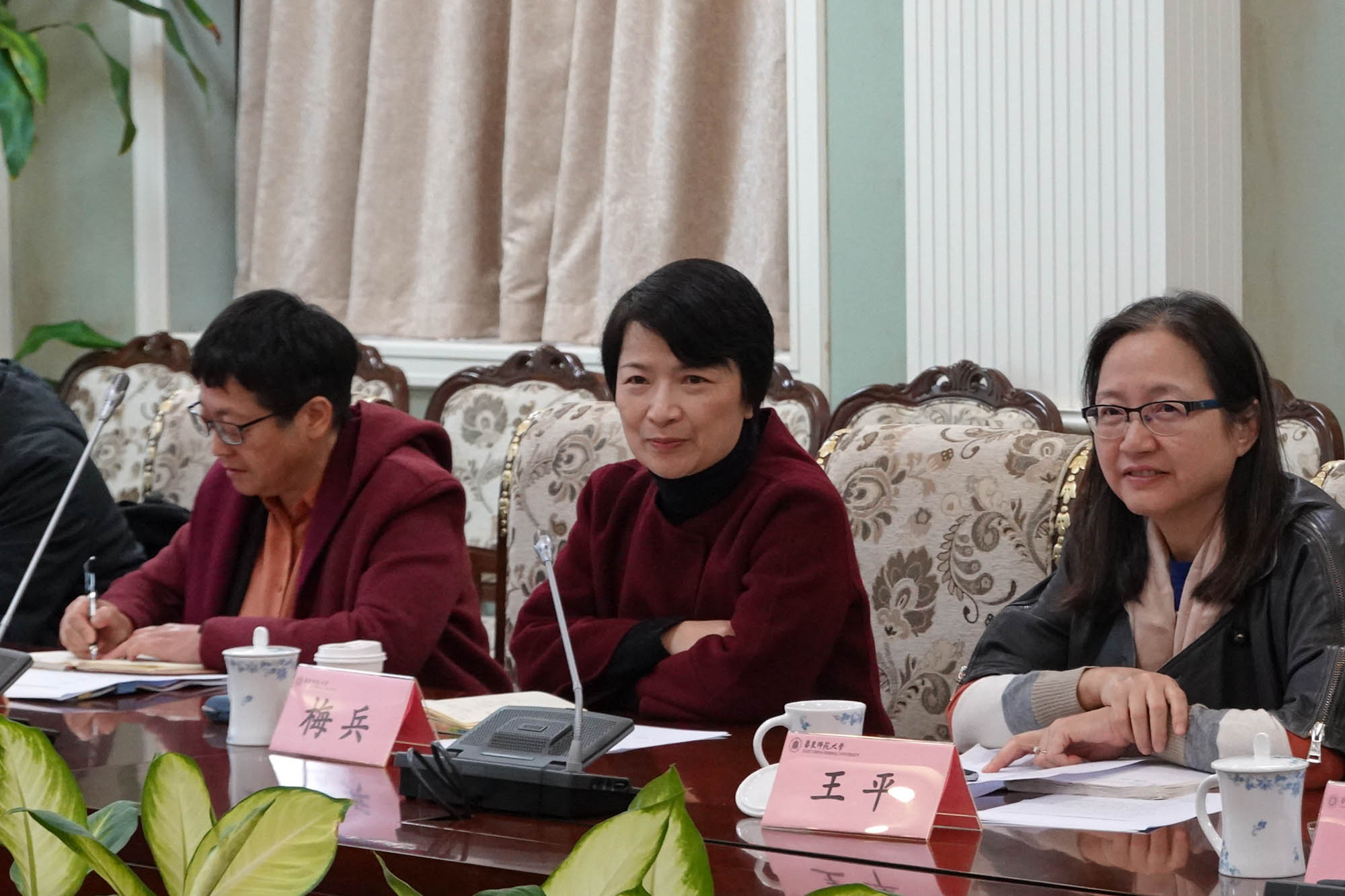 校党委书记梅兵高度肯定了代表联动对接的意义,对与会老师、同学们关心学校和普陀、闵行两区的发展所提出的真知灼见表示感谢,并代表学校对两区人大代表所付出的辛勤劳动表示敬意。随后,她对任期内始终牢记代表身份,围绕加强学习、提高站位、积极反映社情民意、参政议政等履职情况进行总结,并对华东师大周边环境整治等多项建议作了回顾和梳理,对学校管理和发展愿景提出了思考。梅兵强调,华东师大要实现育人卓越、学术卓越、管理卓越,要扎根中国大地办世界一流大学,以更加主动、积极、开放的姿态主动为普陀区、闵行区的发展提供智力支持和服务,实现多赢。