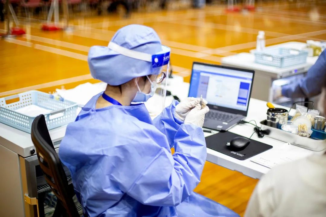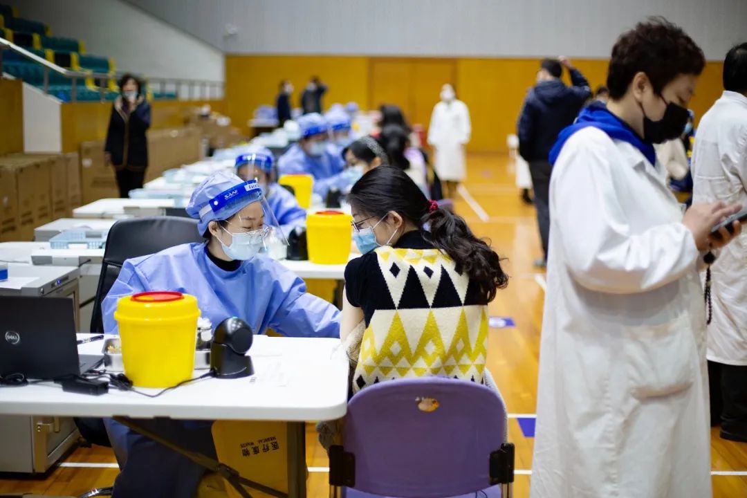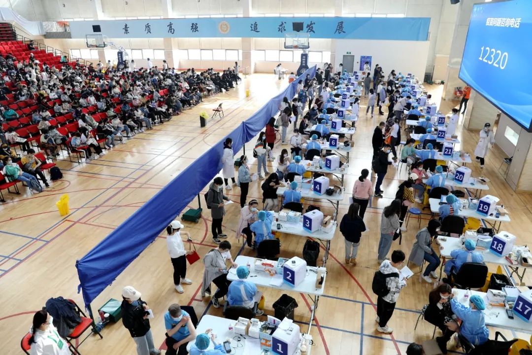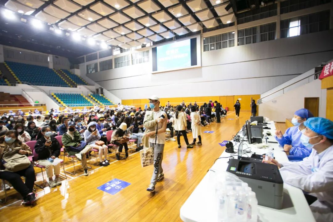 3月27-28日,约18000名学生及教职员工分校区、按时段在两校区体育馆接种了新冠疫苗分别由闵行区、普陀区医护人员组成的临时接种组“上门接种”。