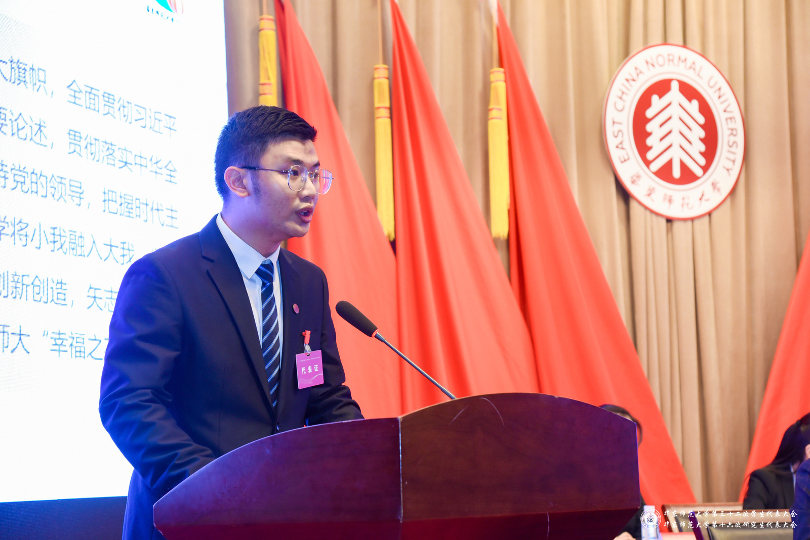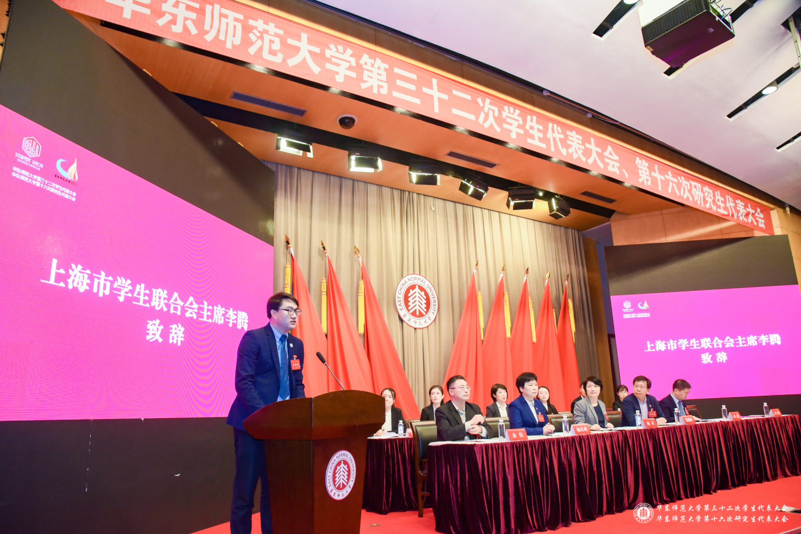 在第一次全体代表大会上,周祖晗代表第三十一届学生会作了题为“面向一流定位,坚持卓越导向,为建设‘世界一流大学’贡献青春力量”的工作报告,林聪泳代表第十九届研究生会作了题为“青年传薪火,奋进谱新篇,以青春力量共绘师大‘幸福之花’”的工作报告。两份报告全面总结了过去一年学生会、研究生会取得的成绩和经验,系统阐明了华东师大青年学子在新形势下的责任与使命以及新阶段学生会、研究生会职责所在,对未来一段时期学生组织工作的指导思想、发展思路和主要任务提出了总体要求。