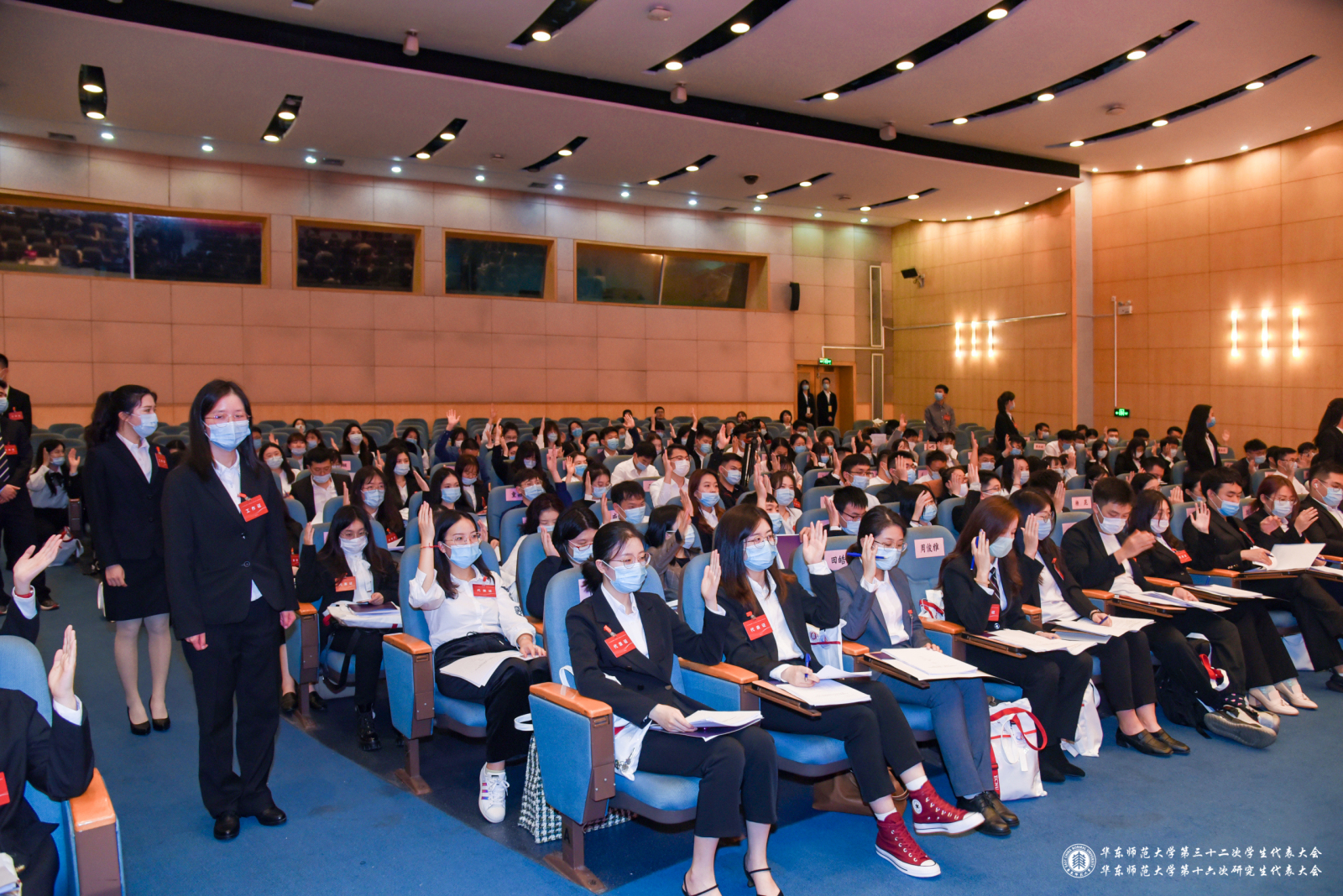 3245澳门新莆京第三十二次学生代表大会、第十六次研究生代表大会在校歌声中圆满闭幕。
