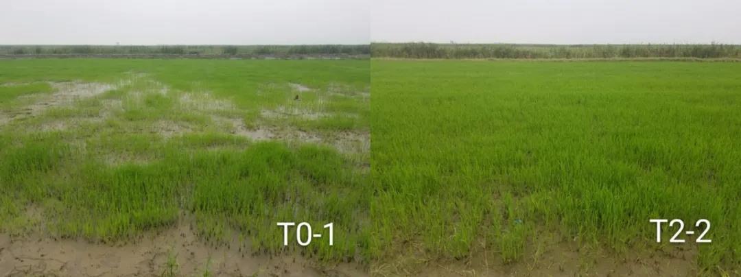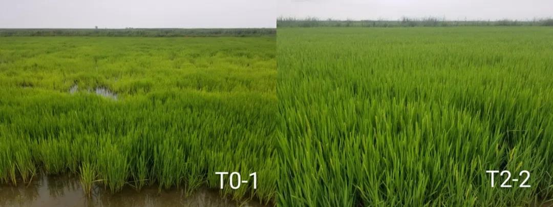 改良田长势明显优于对照田