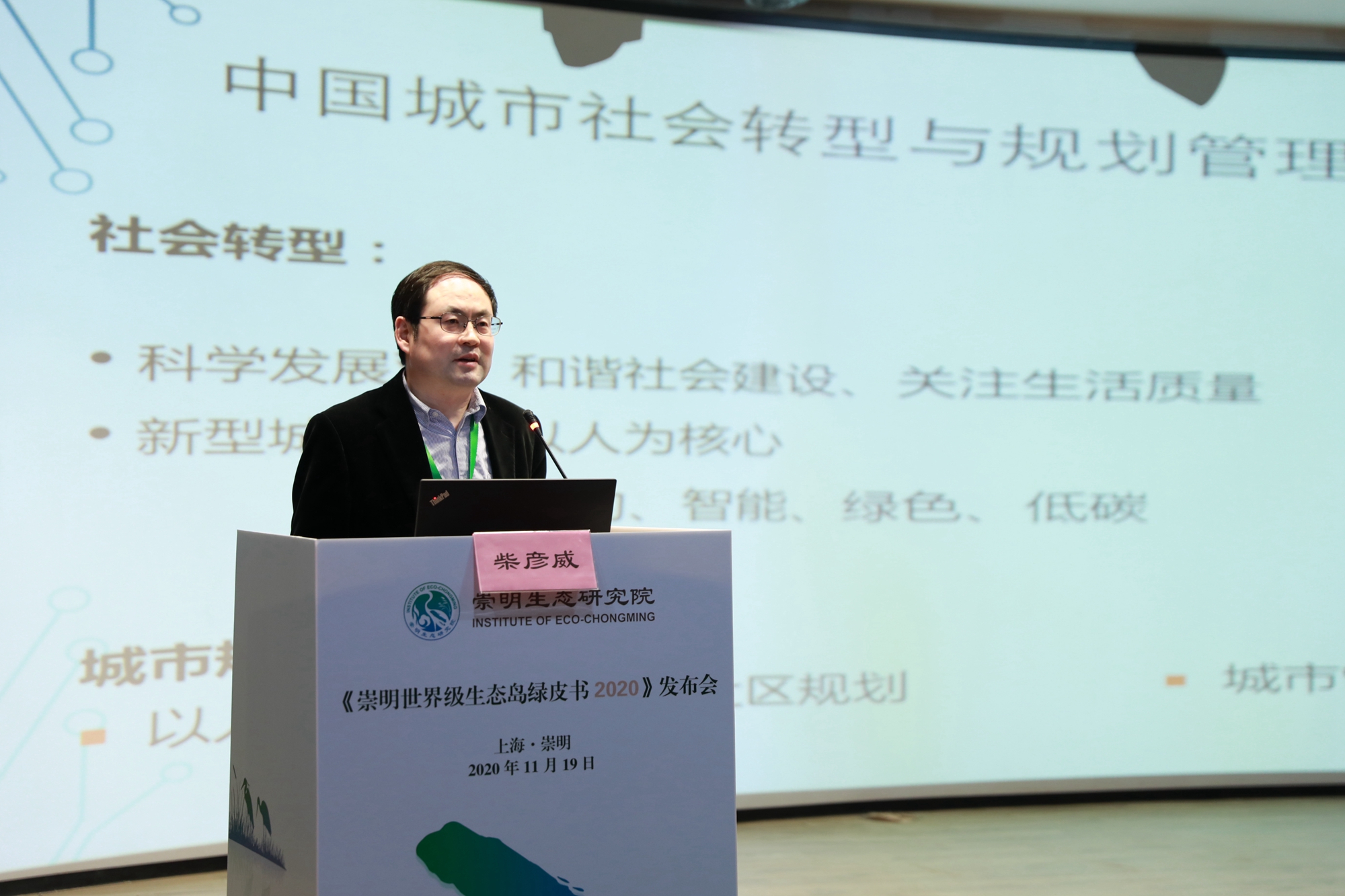 城市与区域科学学院党委书记孙斌栋介绍《崇明世界级生态岛绿皮书2020》编撰出版概况