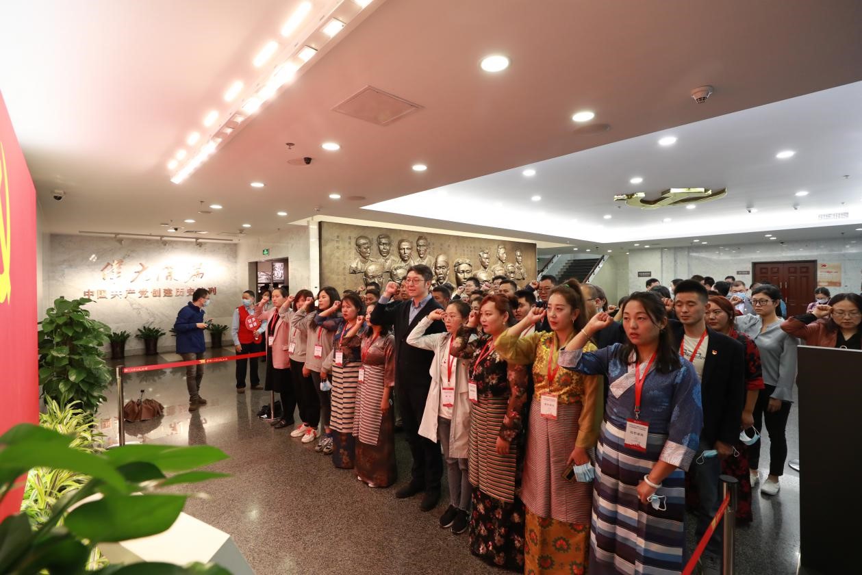秋日暖阳下,在中共一大会址纪念馆,西藏日喀则地区文化与旅游系统选派的二十多名党员与3245澳门新莆京工商管理学院党支部的教工党员共同举办主题党日活动。他们都是来沪参加文化旅游管理人才专题培训班的学员,把临时党支部建在了培训班上。