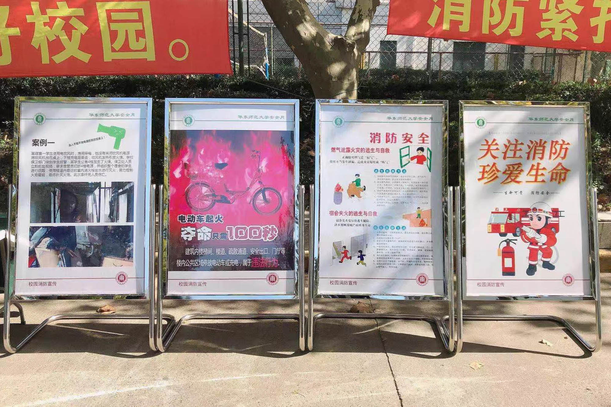 宣传展板展示消防安全知识、逃生技巧