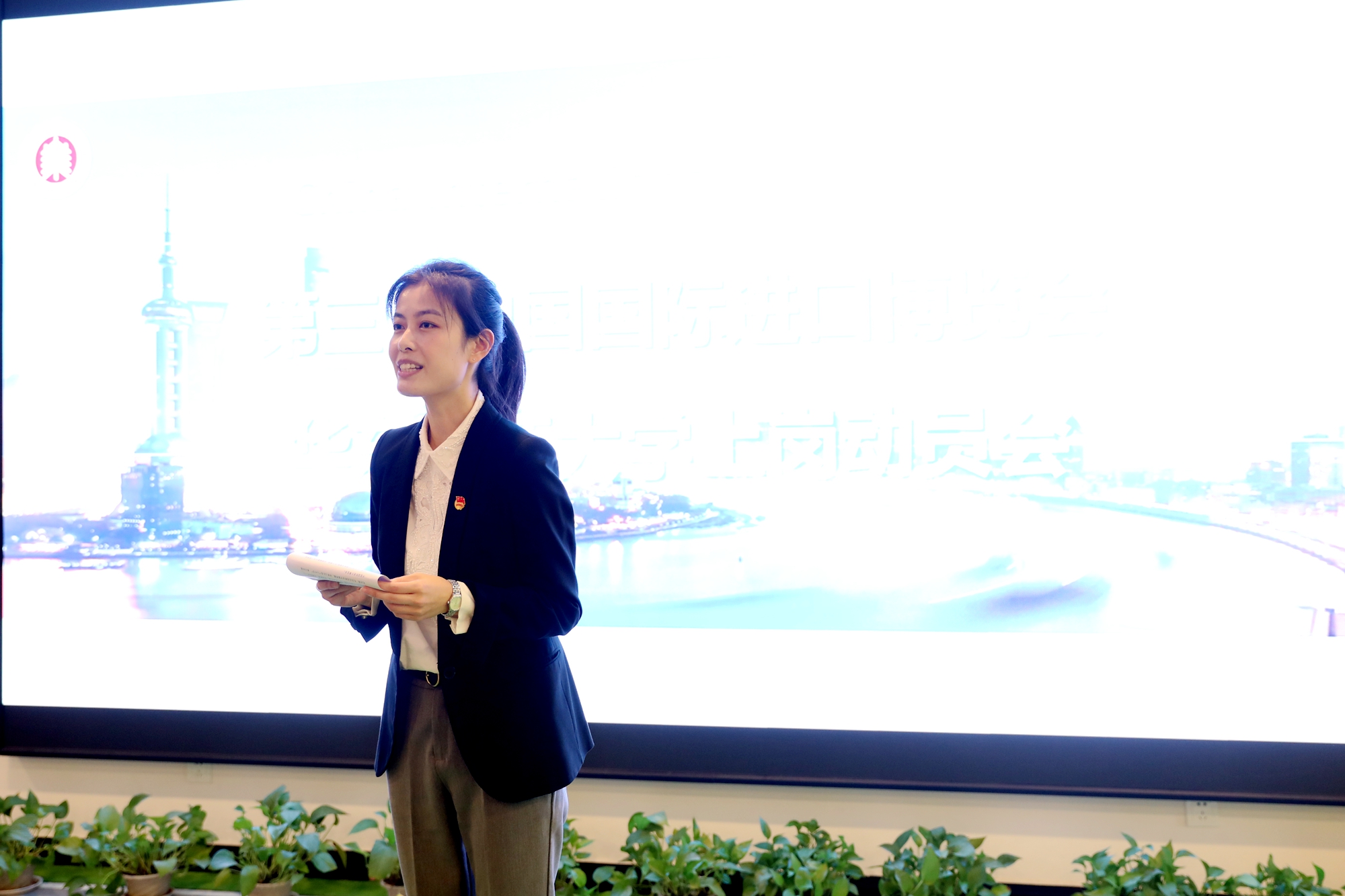 11月2日,距离第三届中国国际进口博览会开幕还有两天,校党委书记梅兵、校党委副书记杨昌利与即将上岗的第三批40名师大“小叶子”面对面交流,举行了一场温馨的岗前动员仪式。