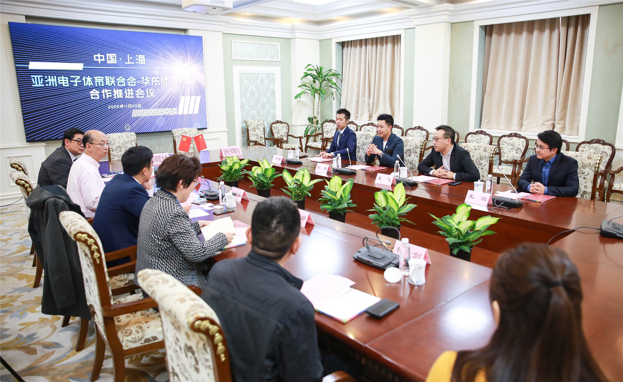 签约座谈会上,华东师大党委常务副书记王宏舟,人文与社会科学研究院院长吴瑞君教授,国际交流处副处长、港澳台办公室主任章平,体育与健康学院社会体育系主任杨剑教授,人文与社会科学研究院副院长、电竞产业发展研究中心主任许鑫教授,与亚洲电子体育联合会总干事、香港足总国际事务委员会委员刘钊,亚洲电子体育发展基金主席王飞,日商SNK株式会社战略与维权部本部长回广彬,上海跃世体育发展有限公司CEO王谧等深入交流,共商如何通过产学合作,服务电子体育产业未来发展。