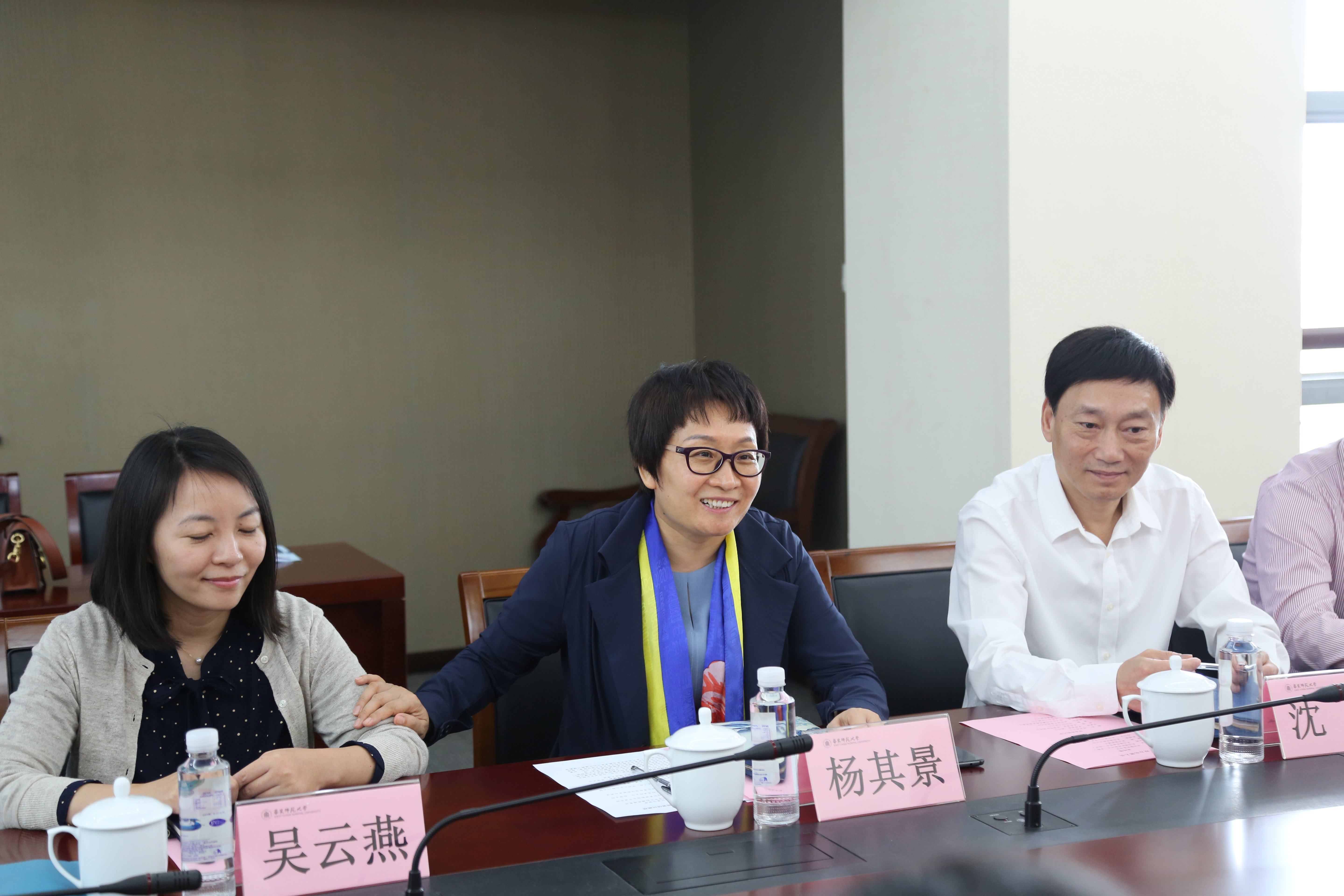 杨其景介绍了吴泾镇以党建引领特色小镇建设的发展经验。她表示,吴泾镇的发展成就离不开华东师大的支持,“十四五”期间,将进一步深化与华东师大的合作,为学校发展提供更周全的配套服务。