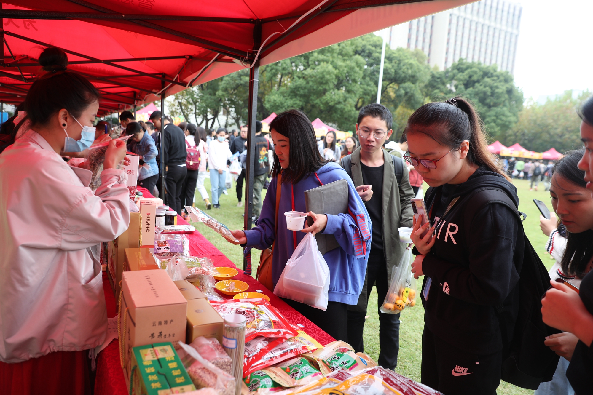 10月21日,华东师大第三十二届节粮月暨第八届食品节中北校区专场在文史楼前大草坪举行。本次活动融合了“节粮”宣传和“扶贫”主题,引导师生在“美好‘食’光”中“品”味扶贫美食,“节”约每份粮食。此前一周,闵行校区食品节专场活动已先期拉开了帷幕。