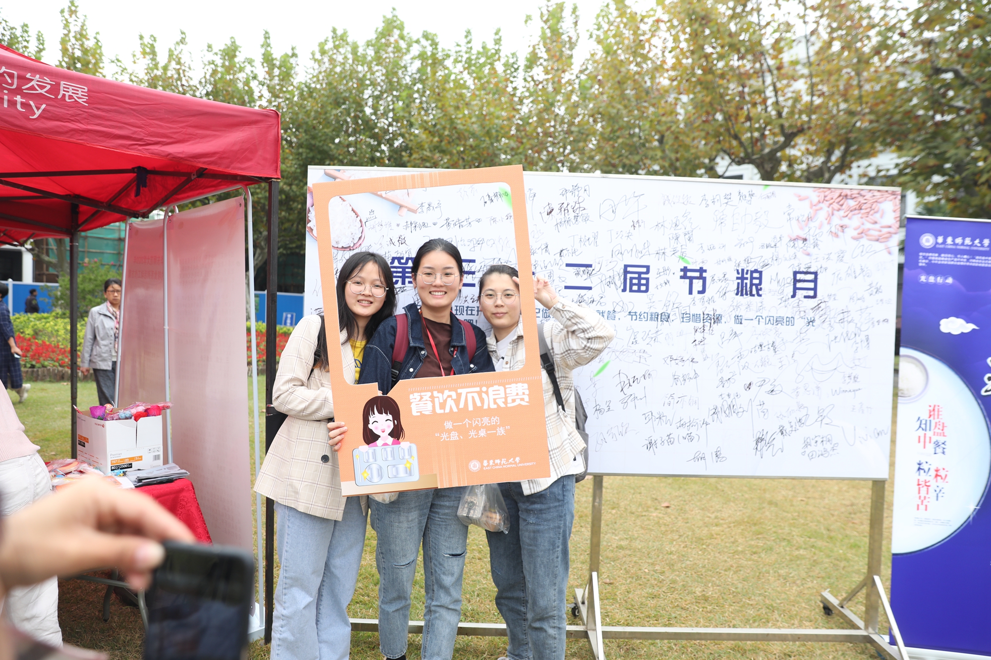 “一粒米,千滴汗,粒粒粮食汗珠换。”同学们在品尝美食的同时,不忘“爱粮、节粮”,纷纷响应餐饮不浪费的号召、领取“节粮倡议书”,踊跃参与现场打卡活动,在朋友圈发布节粮宣言后,还可领取小礼品一份。