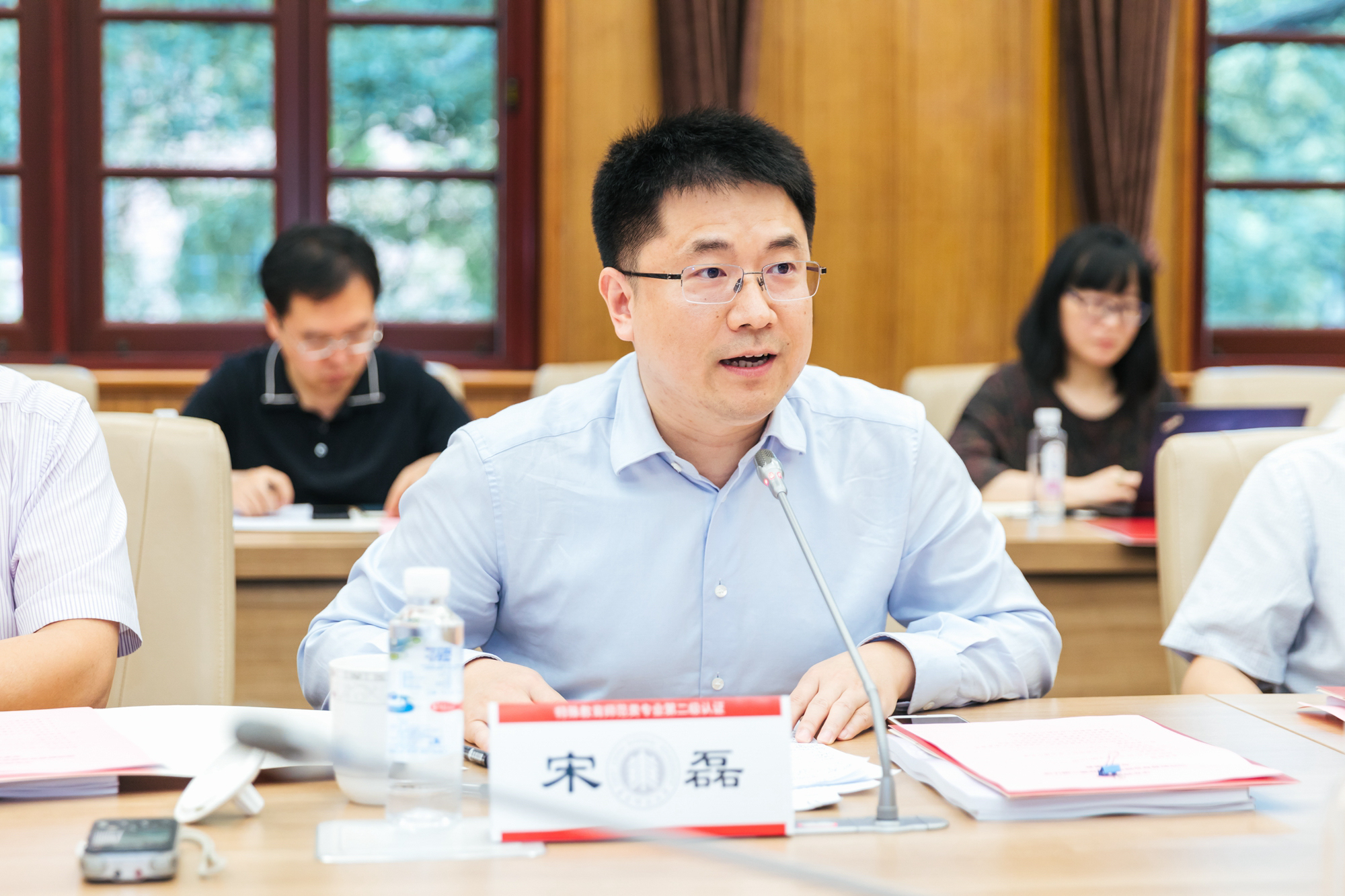接着,教育部教师工作司副司长宋磊讲话。他强调,这是一次特殊的“打样”标杆反馈会:反馈会是在贯彻落实习近平总书记今年教师节重要寄语这一特殊形势下召开的;是在实施教师教育振兴行动计划特殊的政策进程中召开的;是在扎实推进师范类专业认证特殊的举措下召开的。他指出,师范类专业认证是非常重要的“牵一发而动全身”的政策,是从源头上建设高素质、专业化、创新型教师队伍的一项重要举措,整个认证工作开局良好,师范教育初心回归明显。