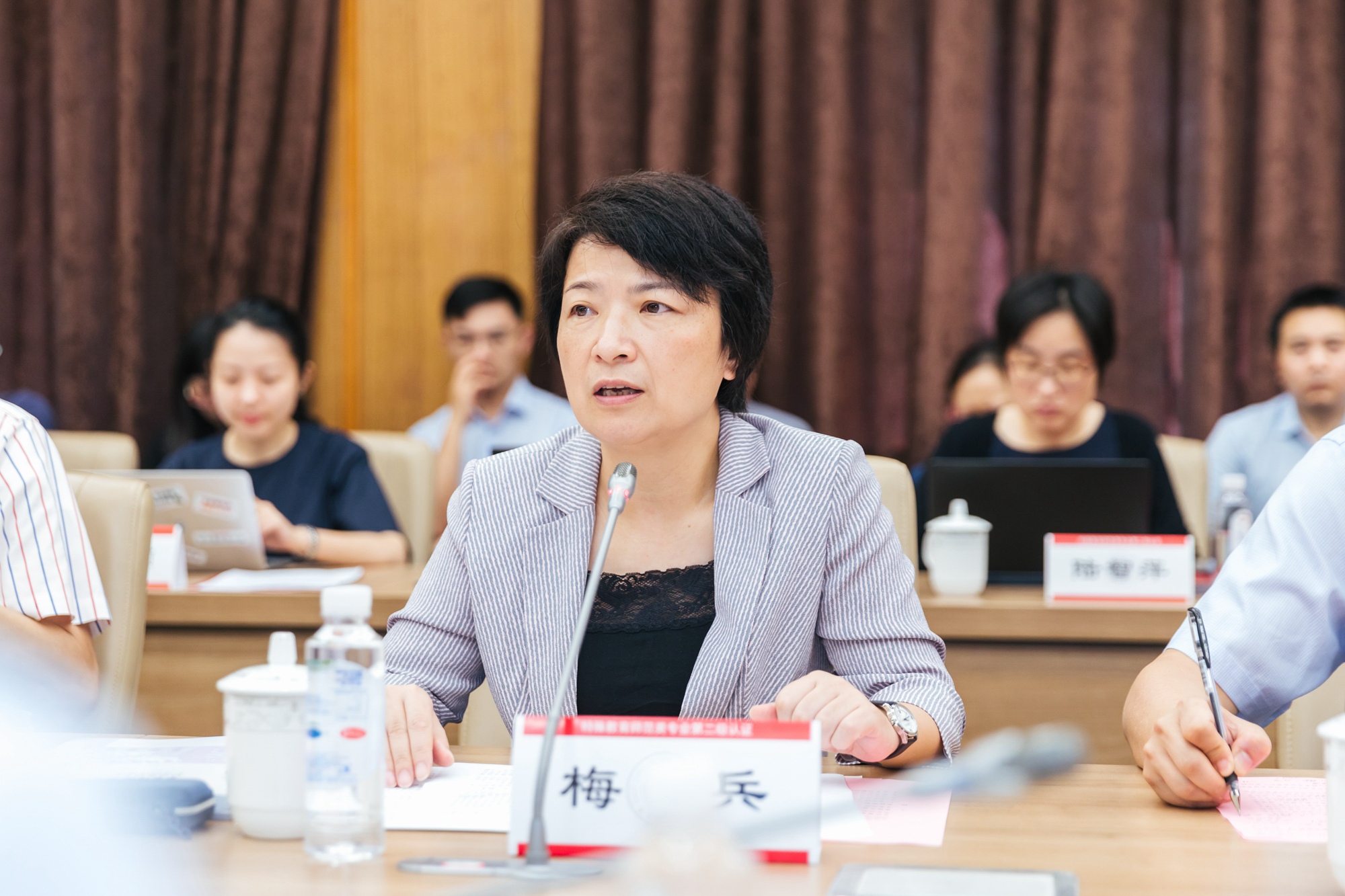 校党委书记梅兵代表学校致敬认证专家组专家全程投入和辛勤付出,感谢专家组给出的精准指导和无私帮助,并表示学校接下来将重点做好四方面工作:一是坚守信念,将立德树人贯穿到人才培养各个环节;二是对接国家对高水平教师的巨大需求,推动新一轮教师教育改革;三是进一步把新理念、新模式、新方法、新技术应用到教师教育工作,推动实现“智能+”;四是以师范类专业认证为重要契机,深化师范专业内涵式建设。
