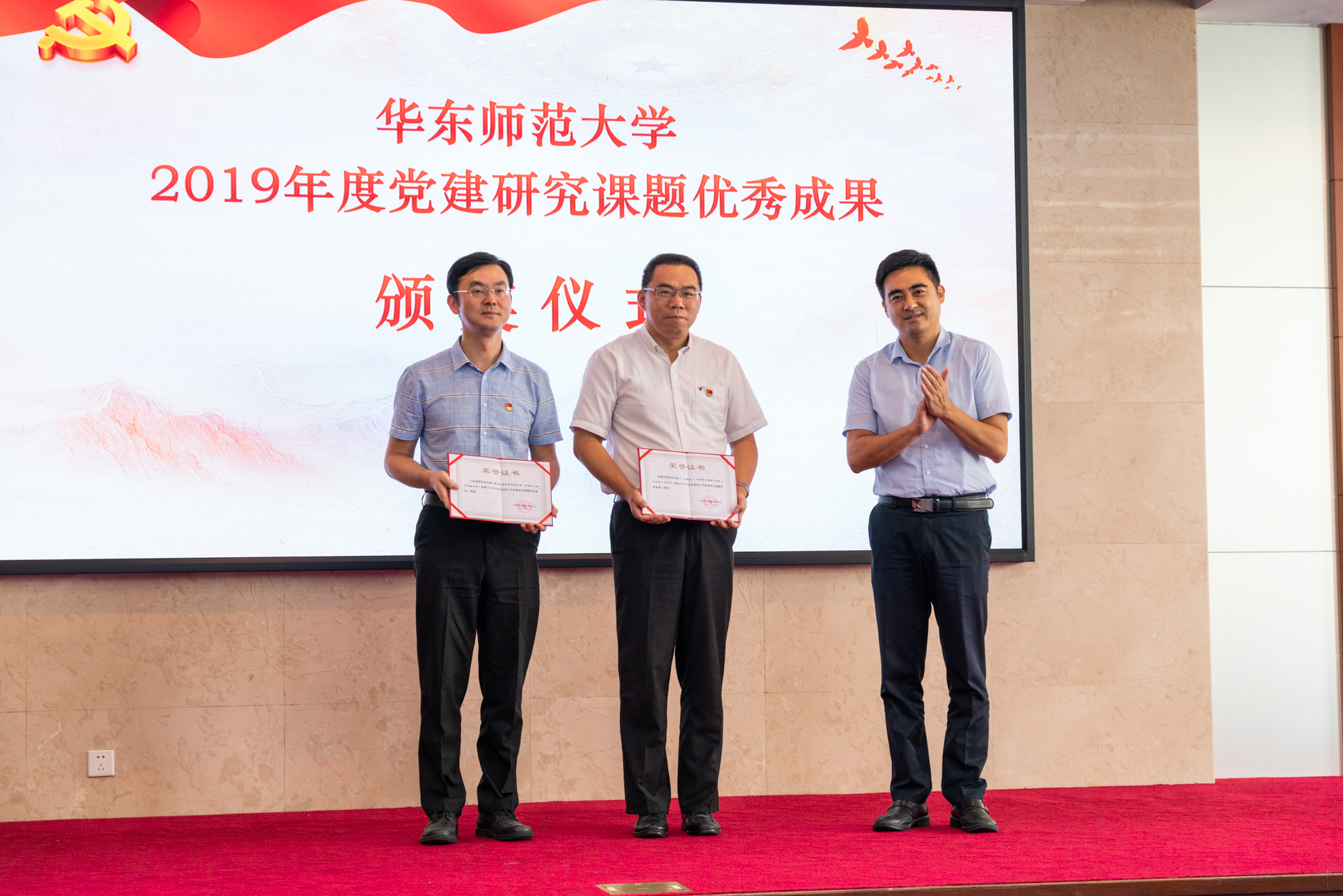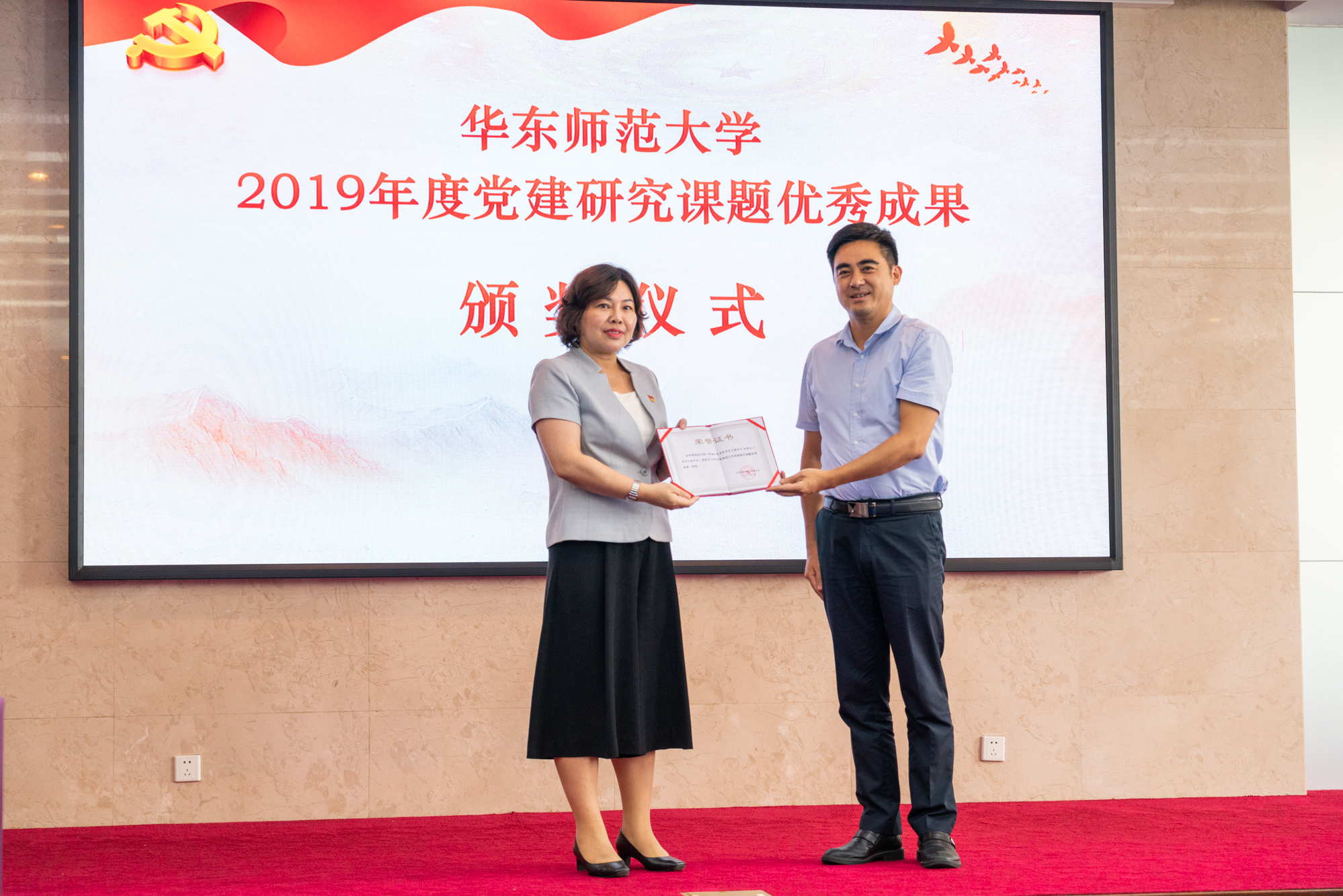 会议首先对校示范党支部进行授牌。曹友谊宣读学校党委决定,梅兵为示范党支部负责人授牌。随后,会议对2019年度校党建研究课题优秀成果进行表彰。曹友谊宣读表彰通报,王宏舟为获奖课题组颁奖。