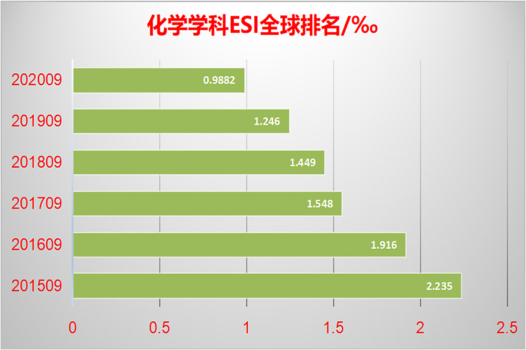 据2020年9月10日科睿唯安(Clarivate Analytics)“基本科学指标数据库”(Essential Science Indicators,简称ESI)公布的最新数据,华东师大化学学科成功进入全球前1‰学科,标志着化学学科建设取得了新突破。