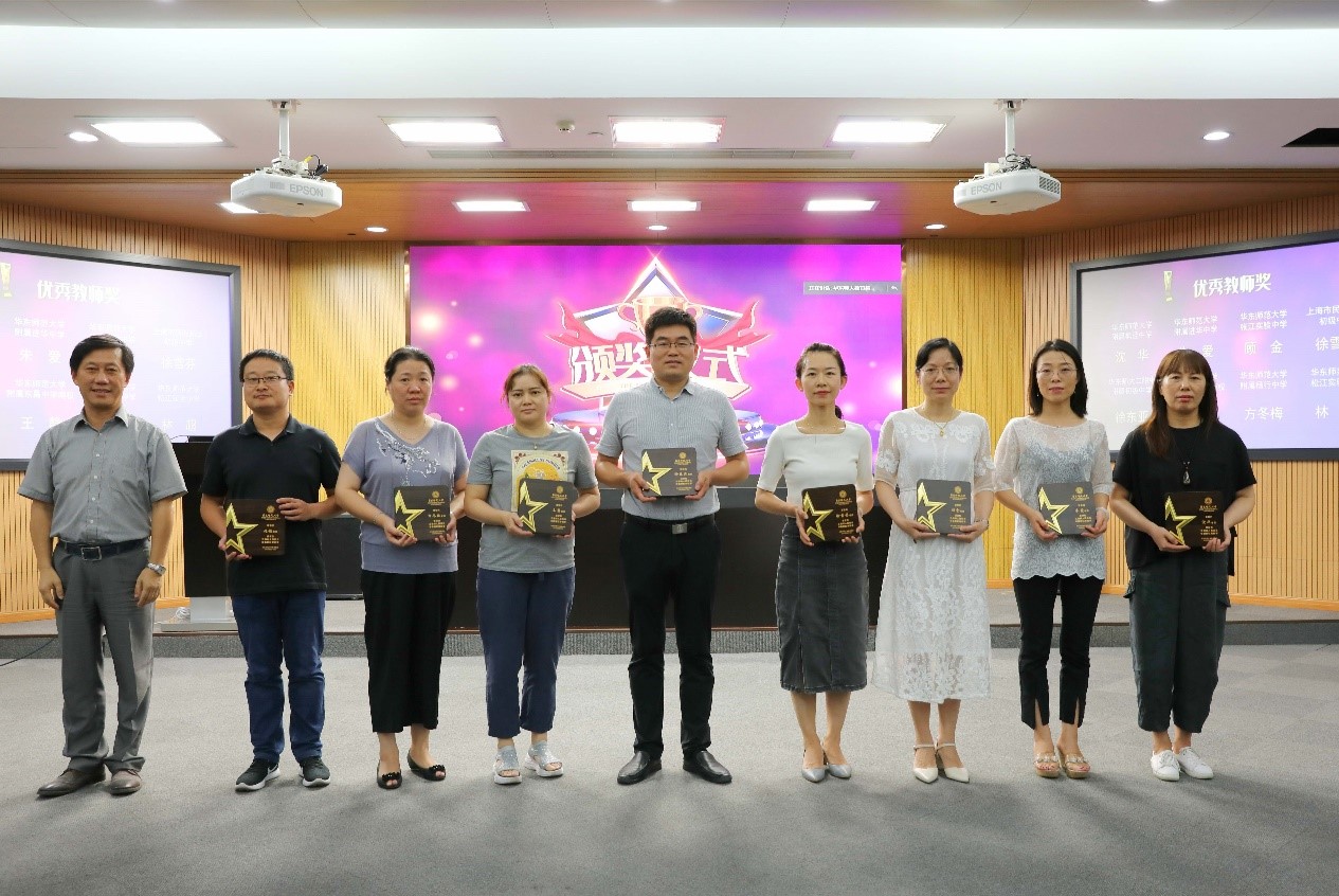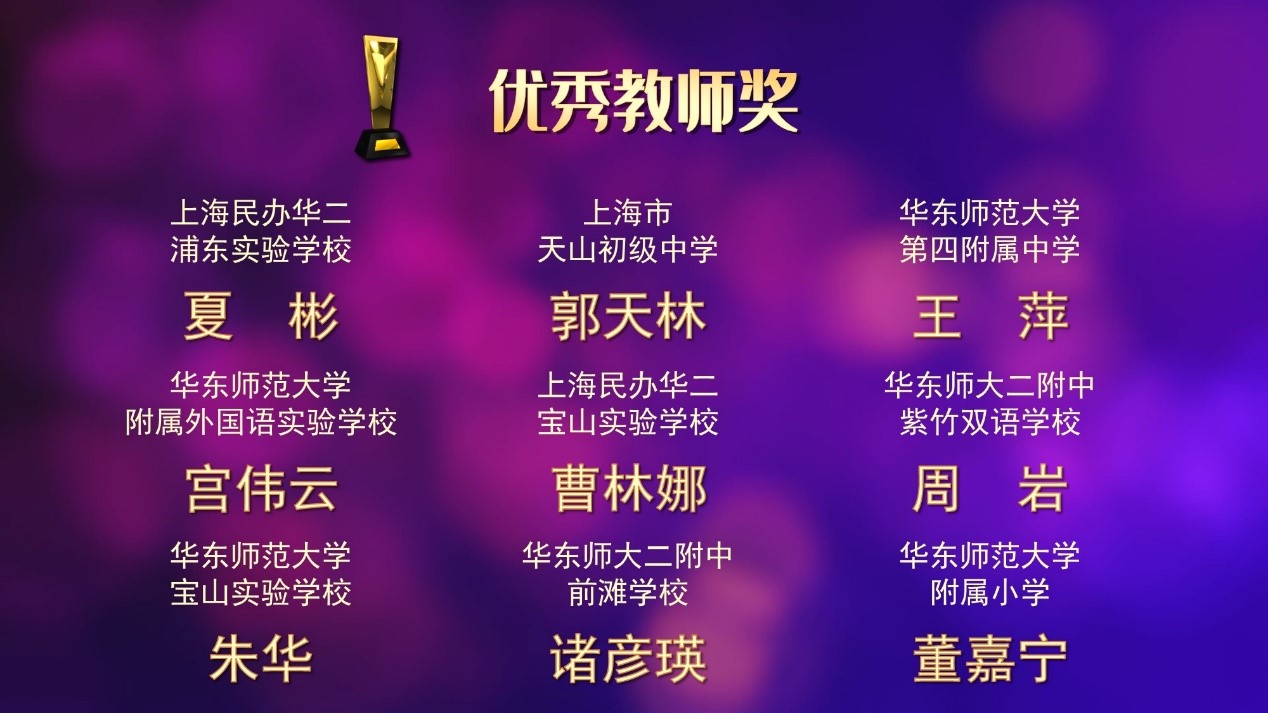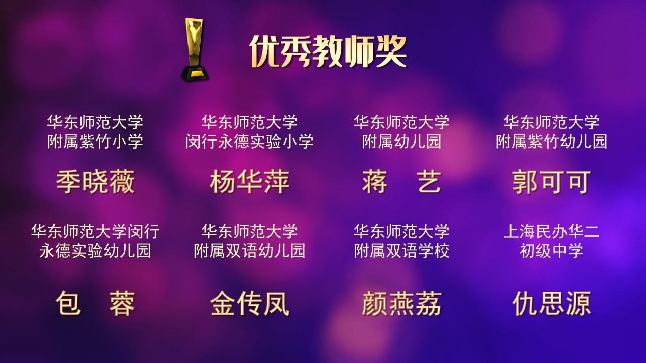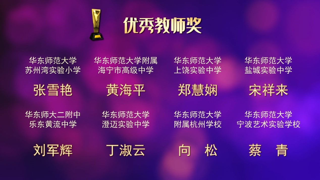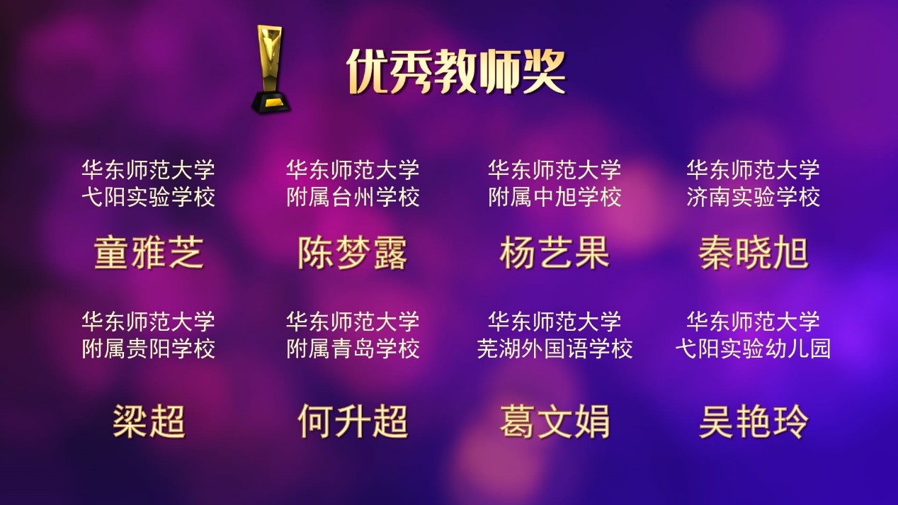 表彰会现场,华东师大副校长、基础教育与终身教育发展部部长、教育集团主任戴立益,华东师大二附中校长、教育集团副主任李志聪,华东师大一附中校长陆磐良,基终部副部长施洪亮、冯剑峰、韩楠等与老师们共襄节日的喜悦。表彰会由基终部副部长刘萍主持,分“初心”“奋战”“桥梁”三个章节进行。