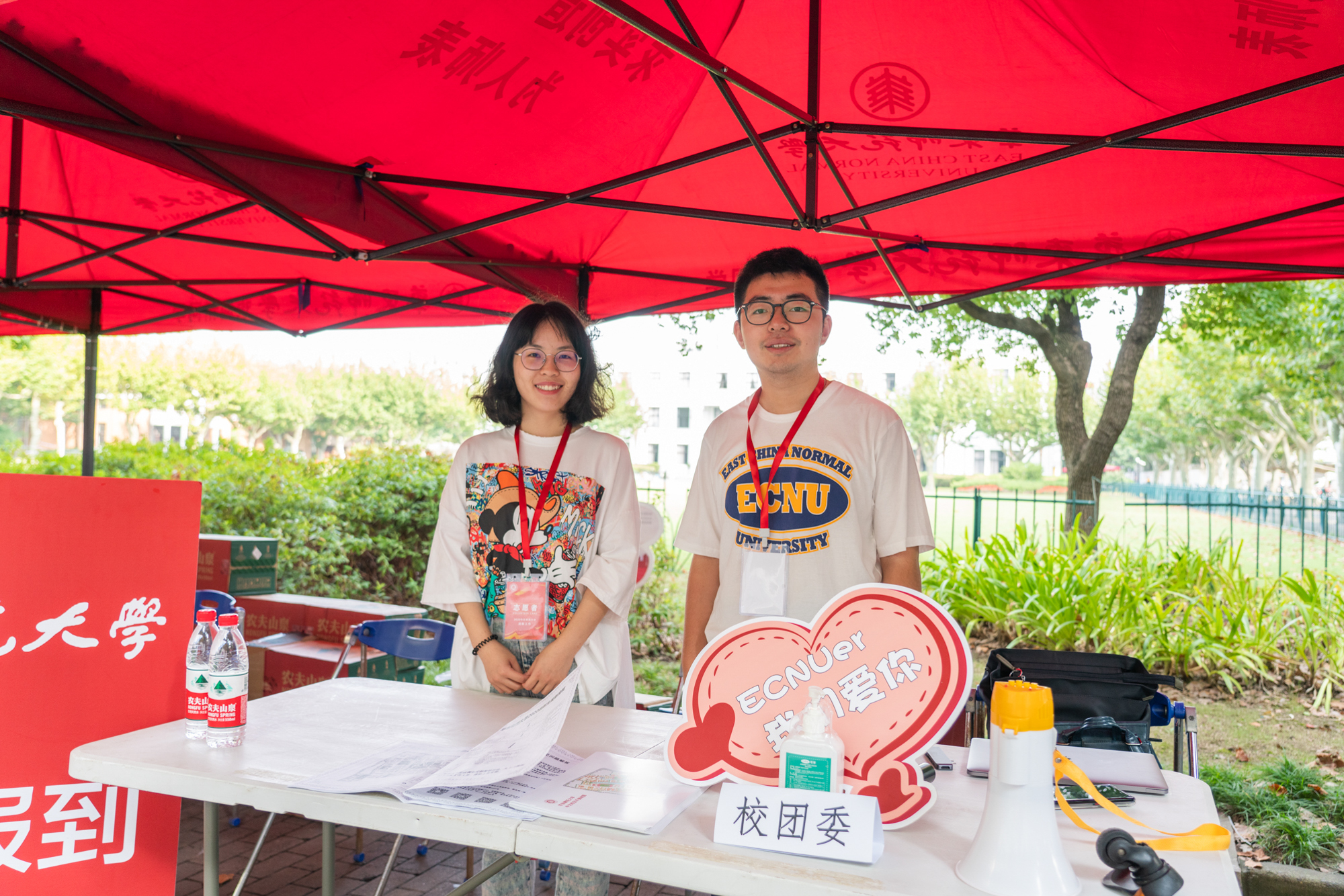 学生工作部、研究生院的老师们在两校区提供志愿服务