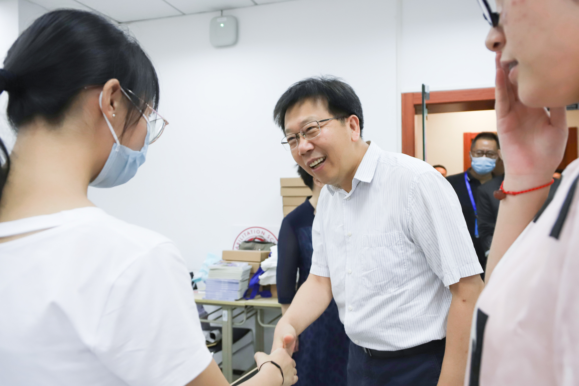 校领导梅兵、钱旭红、朱民、王宏舟、杨昌利、曹友谊、孙真荣、李志斌、周傲英、戴立益等来到迎新现场、服务窗口和学生宿舍,慰问参与迎新工作的师生,看望新生及其亲友们。