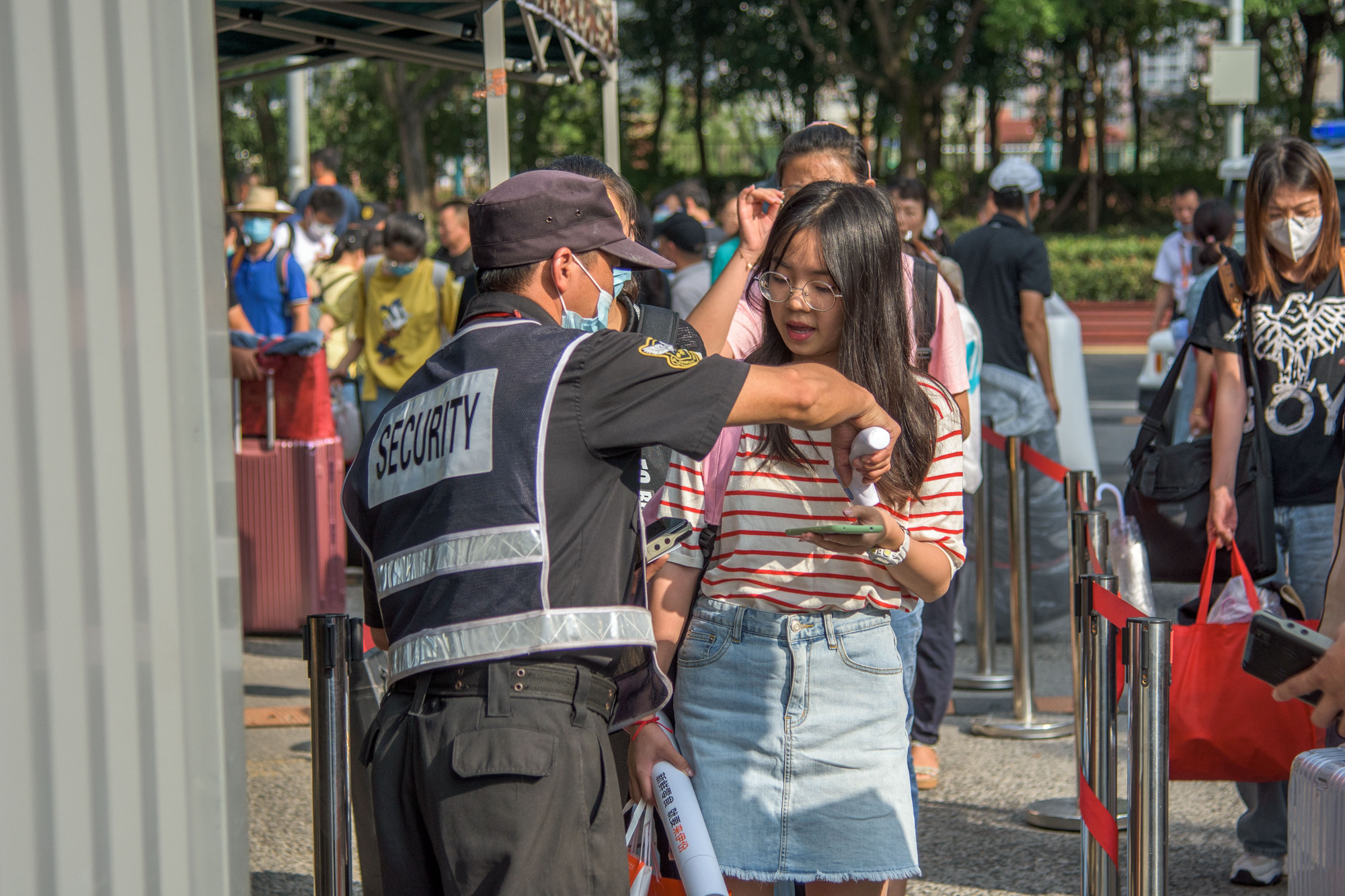 入校“三部曲”,一个不能少。据保卫处介绍,在学校校门处安保人员将对入校师生依次进行健康码检查、校园卡(身份证)身份识别、体温监测,所有入校人员须有入校权限经刷证刷卡通过后方能入校。如果有体温过高的学生,将立即引导其至临时隔离观察等候区,由校医院医生进行二次测温,体温≥37.3℃的学生由校医院跟踪处理,防疫应急专车送至指定医院发热门诊。