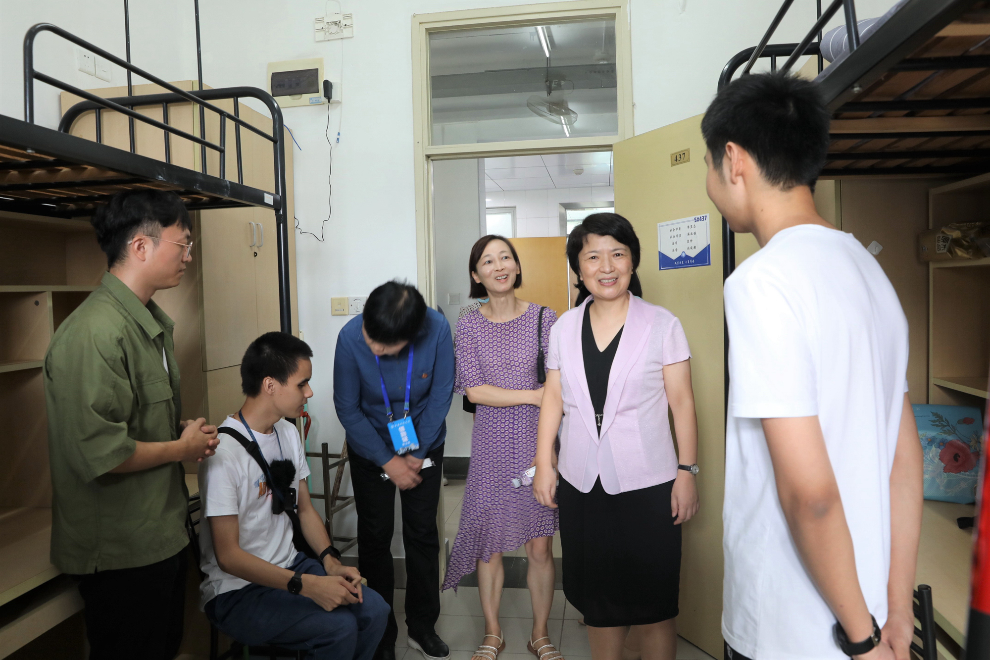 校领导梅兵、钱旭红等来到迎新现场、服务窗口和学生宿舍进行慰问